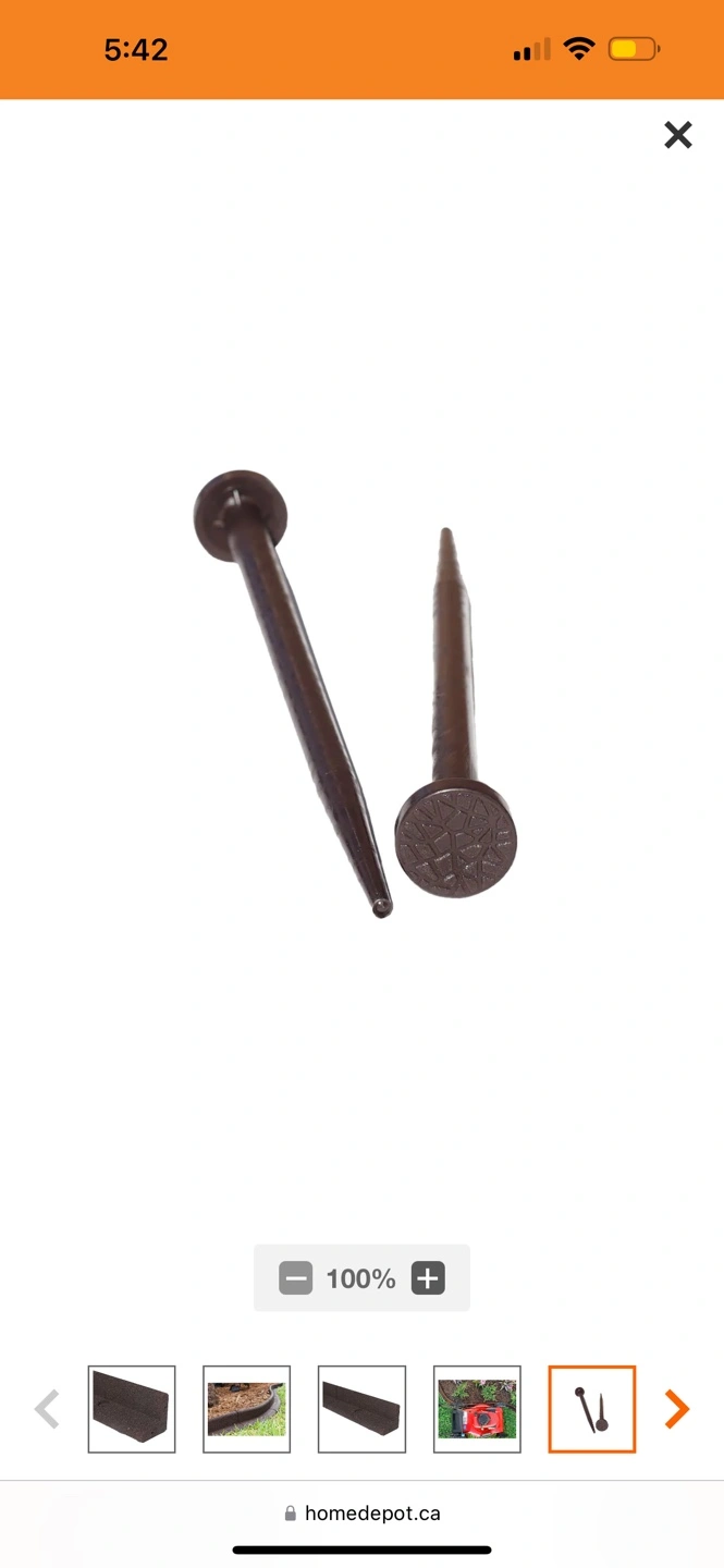 Brown landscape edging, 6-pack, 4 ft. each. Comes with stakes.