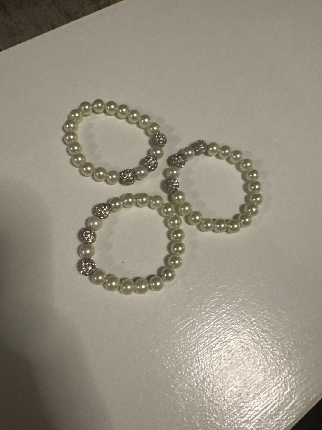 Set of 3 pearl bracelets with rhinestone accents. Stretchy.