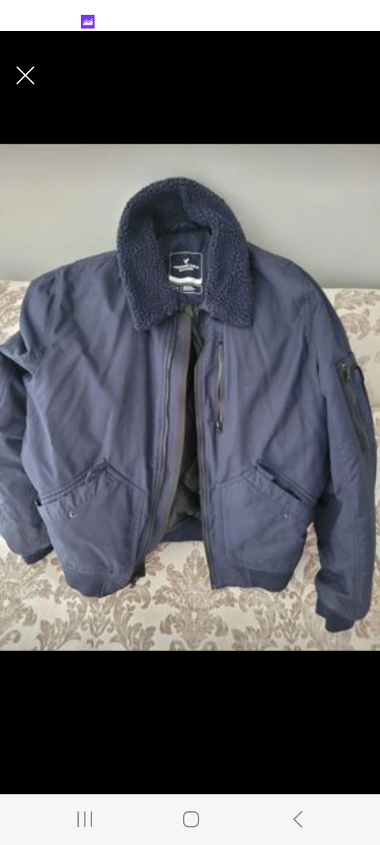 Blue bomber jacket with a fleece collar. Size L/XL teen men's small