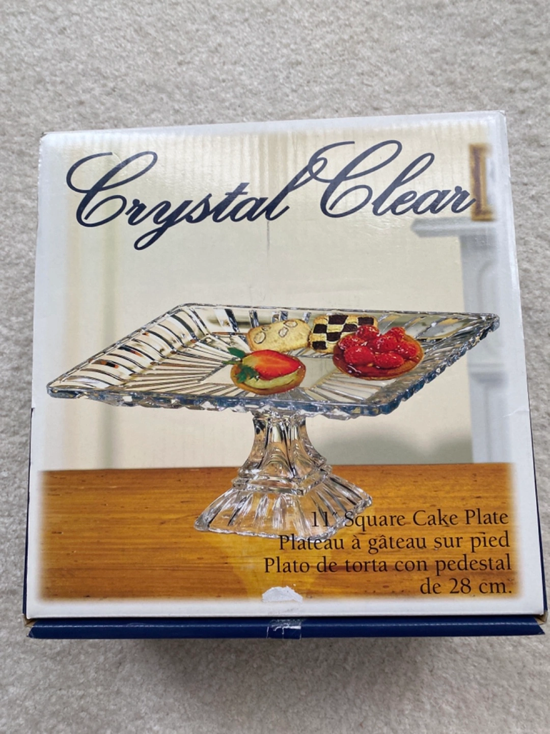 Crystal Clear Alexandria 11 inch square cake plate with pedestal. Lead free crystal.pick up near steeles and Bathurst