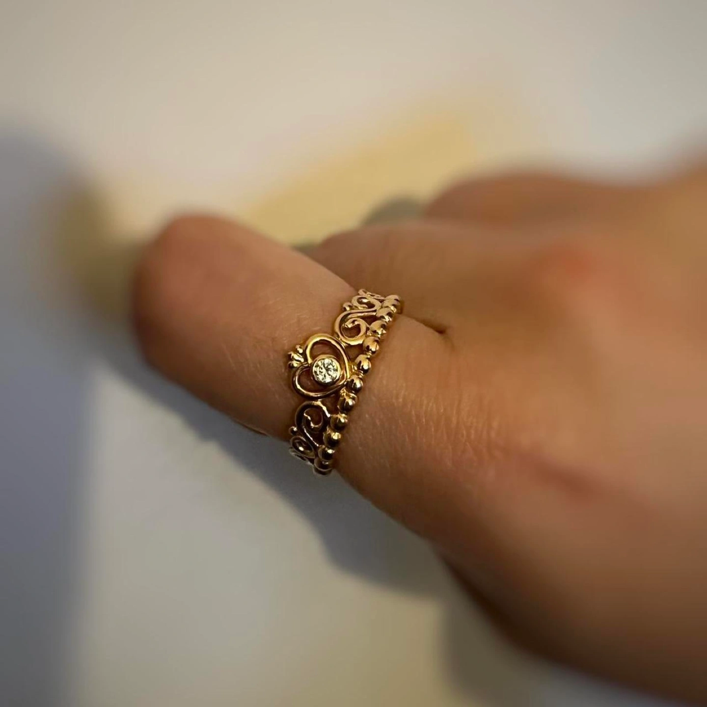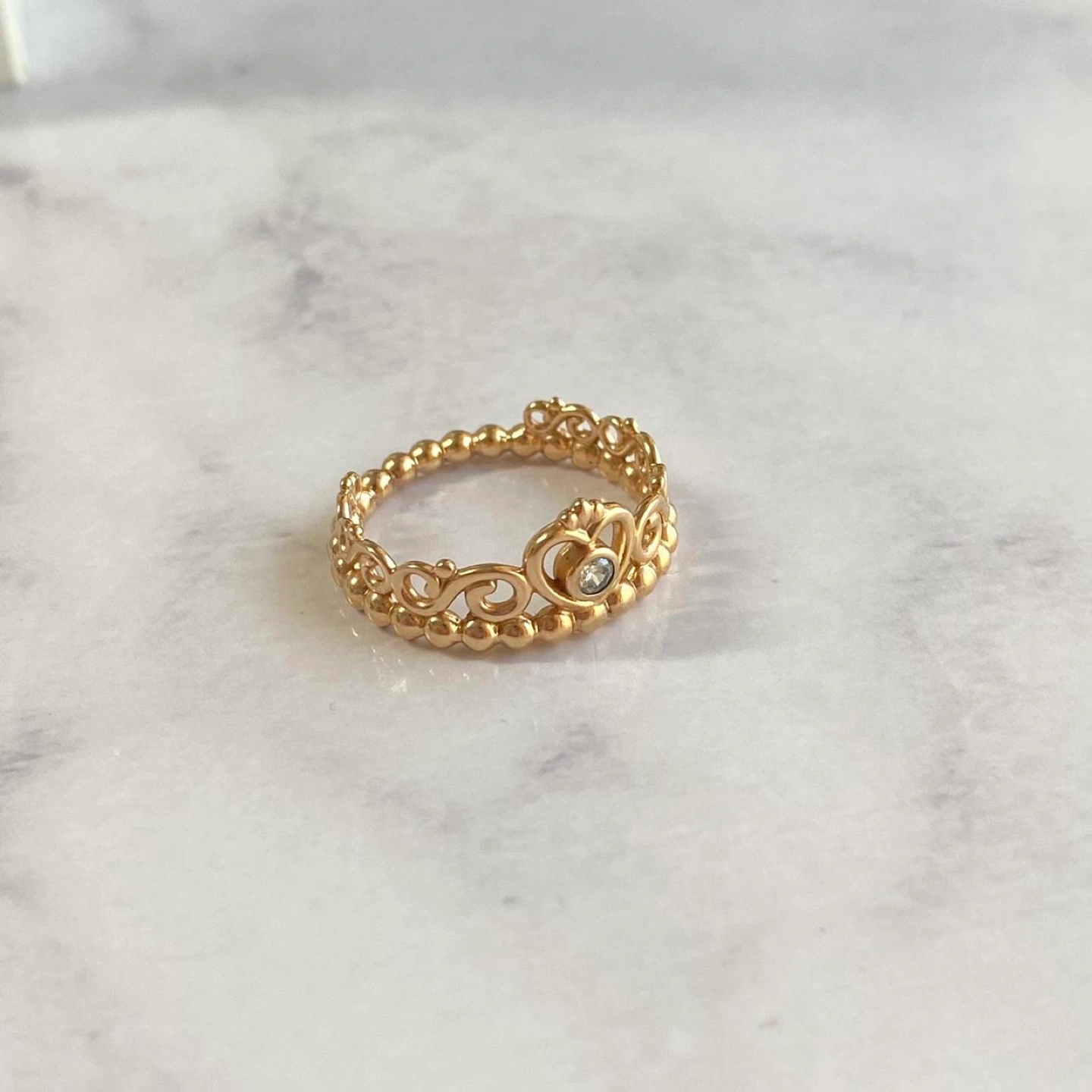 Gold-toned ring with a crown design and a single clear stone in the centre. Size 5 Like new NO BOX
