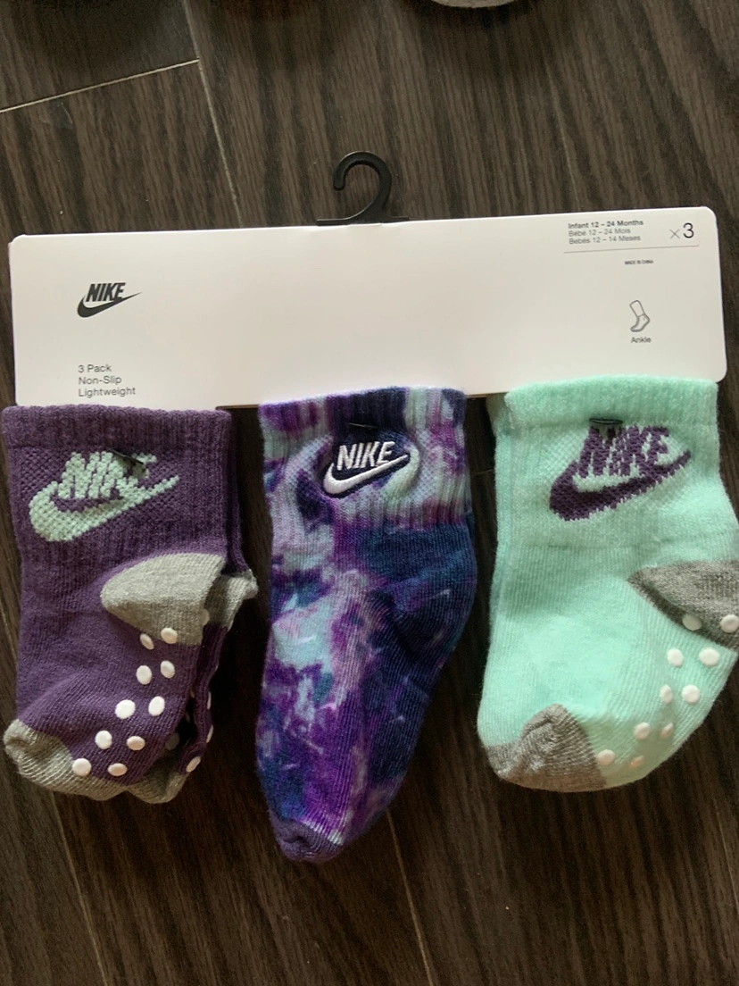 3 pack of Nike baby socks. Non-slip and lightweight. Brand new