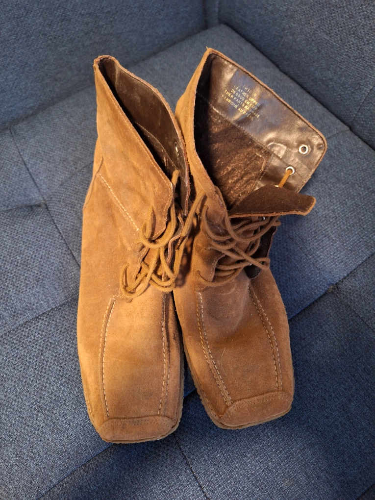 Brown suede ankle boots with lace-up closure. Leather upper. Made in Brazil. Size 9. Very good condition. Perfect for the Fall weather.