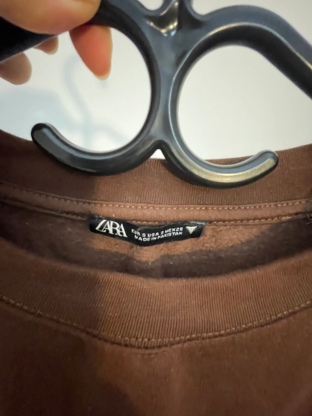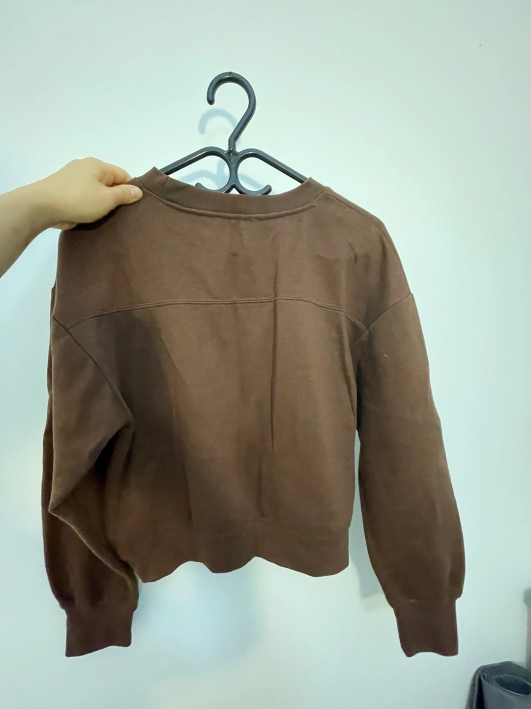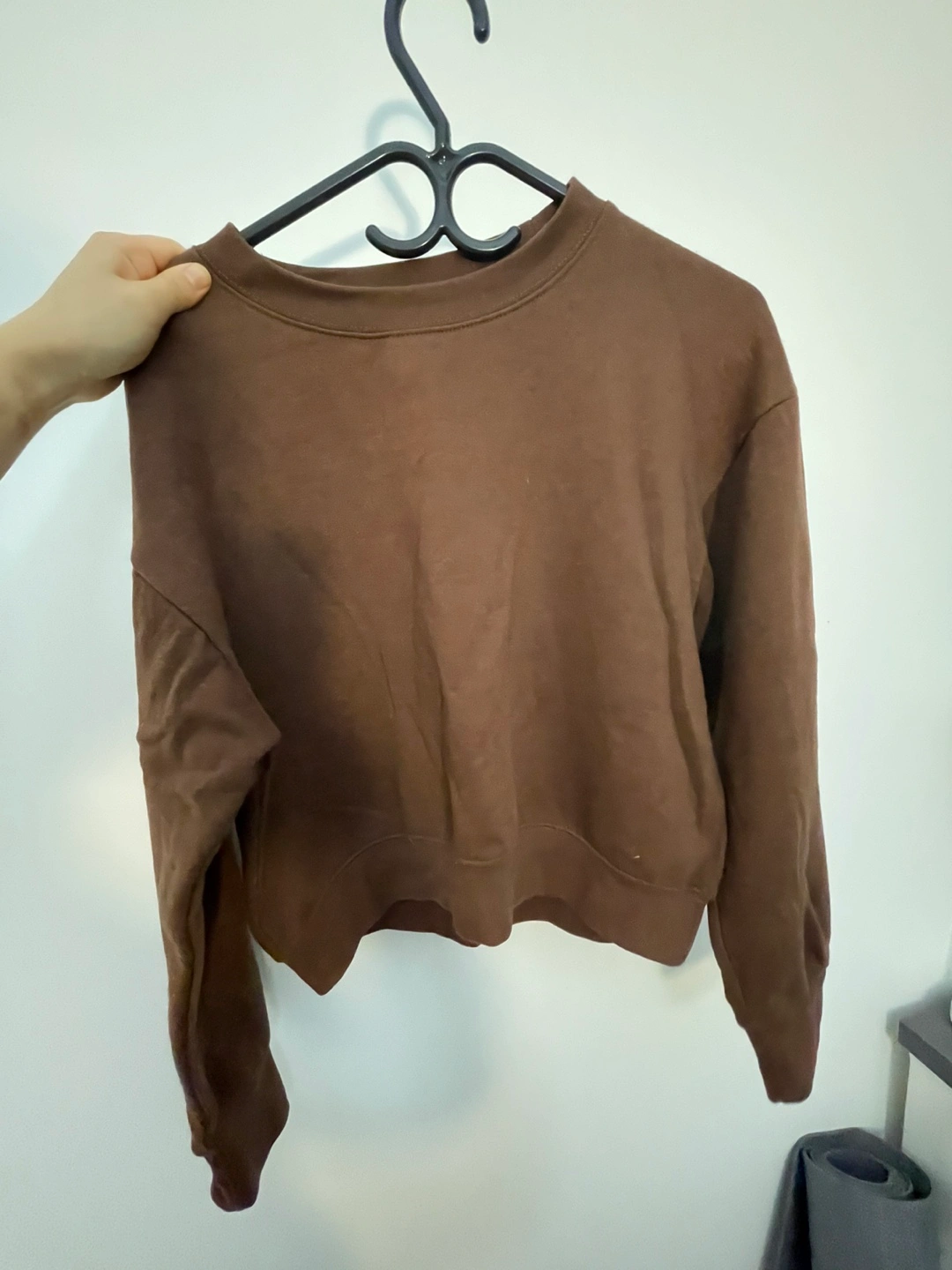 Brown cropped sweatshirt, long sleeves, round neckline Soft and comfy Flattering fit