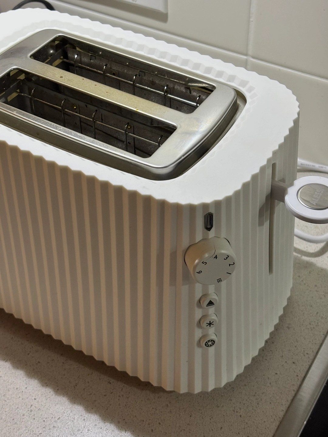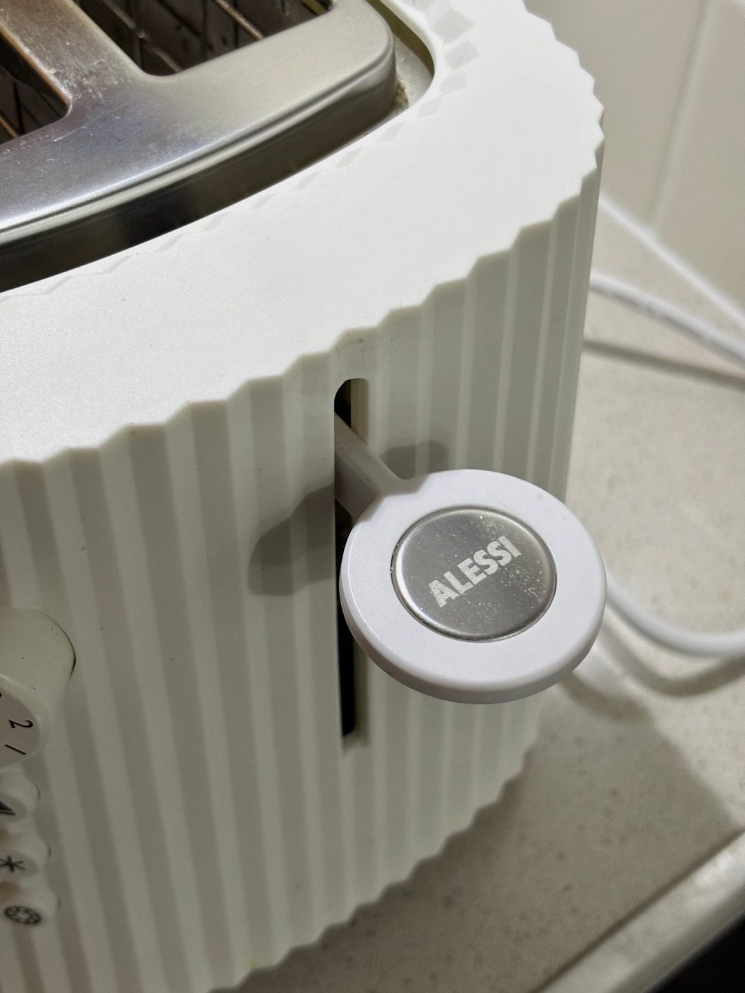 White, two-slice toaster from Alessi. Used gently and minor damage on the knob, but otherwise in perfect working condition, will come with the box as well!