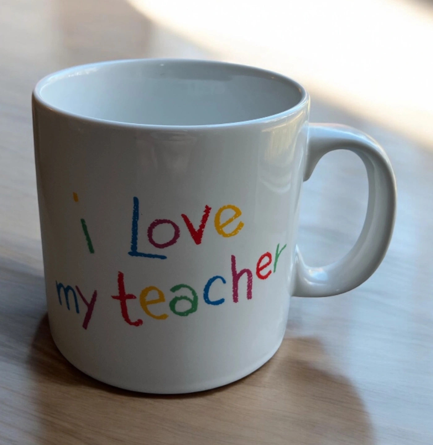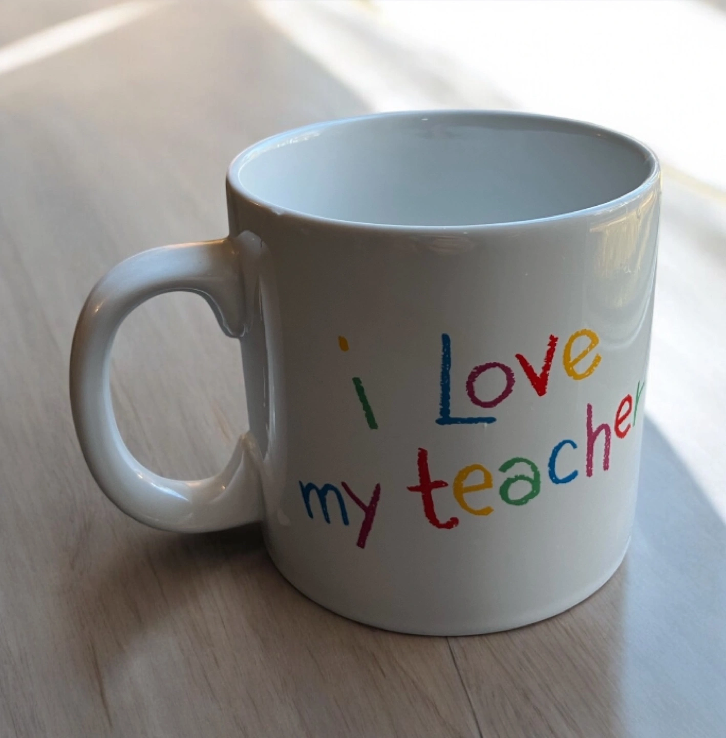 Vintage Russ Berrie "I Love my Teacher" ceramic mug. Great retro gift for your child's teacher at Christmas this year! The mug has not been used and has been on display until now. Measures approximately 3.5" H X 3.25" D Words written in kids handwriting font with what appears to be crayon. This is adorable and so '90's! I ship using recycled material within my home to reduce waste. The package will be wrapped with care if requested or deliver for a fee