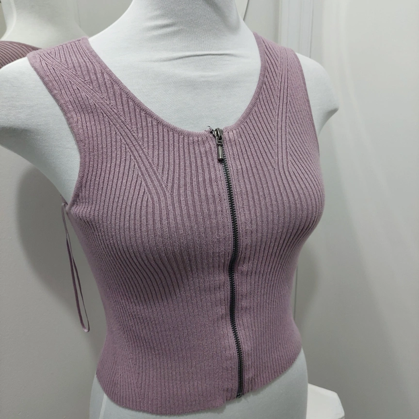Family closet clean out. Recently laundered. This is an excellent piece to have. Firmly fitted zipper closure at the front. The color purple or lilac tank top is comfortable and chic.