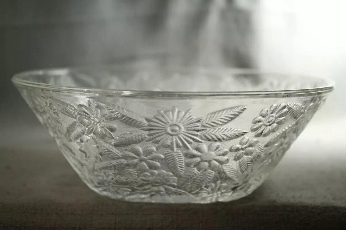 1930s Indiana Glass Pineapple Floral Serving Bowl, Vintage Depression Glass, Kitchen Dining Serving, Home Decor, Clear Crystal