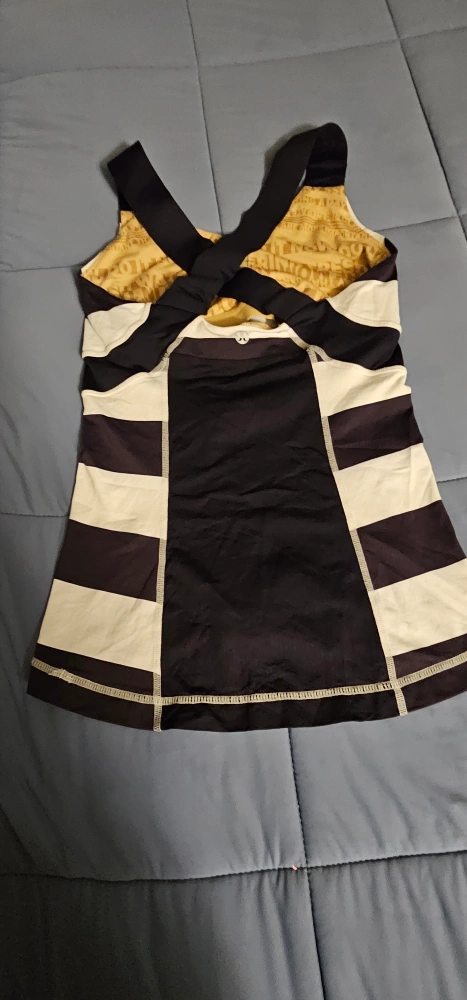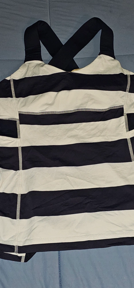 Lululemon tank top. navy blue and white striped. Cross back straps.