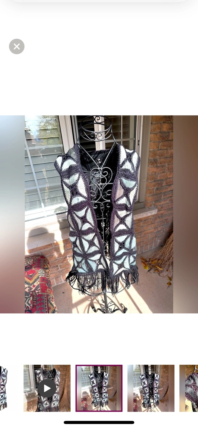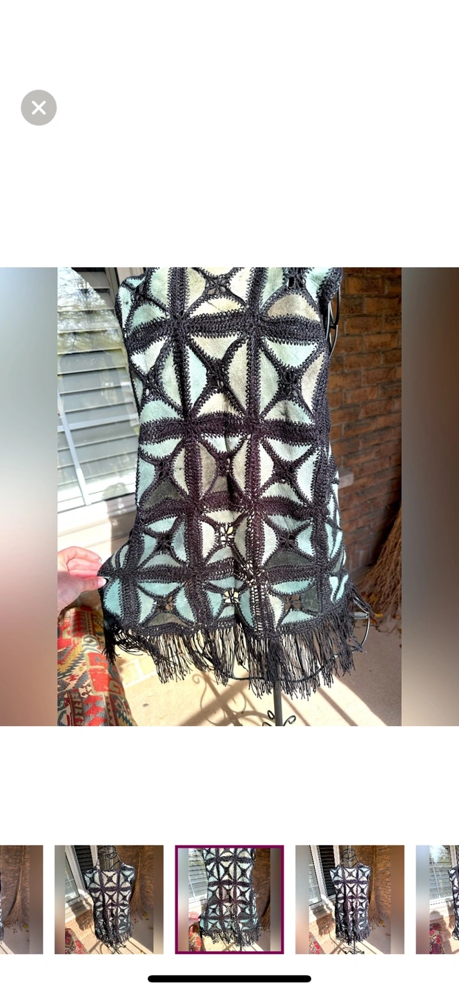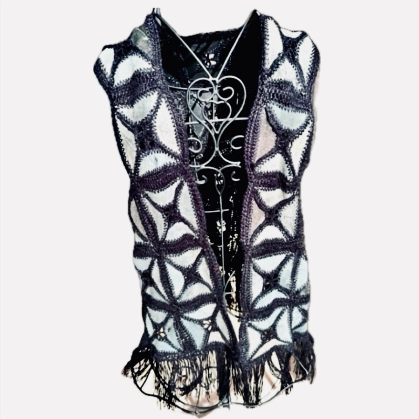 Reversible! One side has suede patchwork in grey-blue with black, and the other side is all black with traditional leather patchwork. Genuine vintage from the 1960s or 1970s. Crochet work throughout. One of a kind. In excellent vintage condition - keep in mind how old this item is, so it won’t be perfect. The fringe is in excellent condition, no flaws to note. Fringe is NOT leather. No size tag but best suited for a size small. Great for all seasons. Will update photos when possible - lighting with the sun and shadows wasn’t great and it was super windy! Tags: western patch patchwork cowgirl midwestern hippie boho fringe bohemian rodeo jacket fall winter spring summer OOAK unique vest sweater country cowboy boots leather danier suede retro vtg vintage 60s 70s flower power crochet small medium cardigan quilt quilted southern Italy luxury rare dress pants Anthropologie oak fort free people Lululemon babaton Wilfred aritzia skims urban outfitters Canada