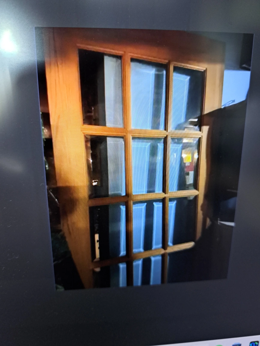 Solid wood door with multiple beveled glass panels. The door is in perfect condition.