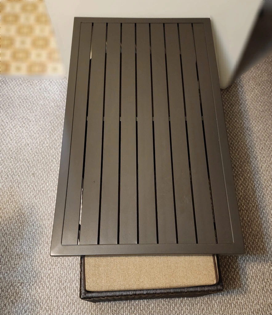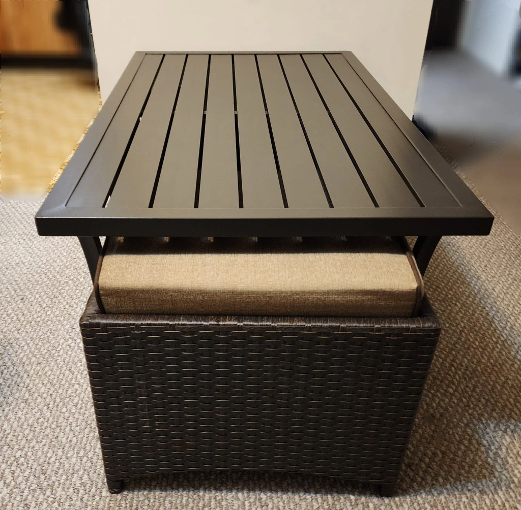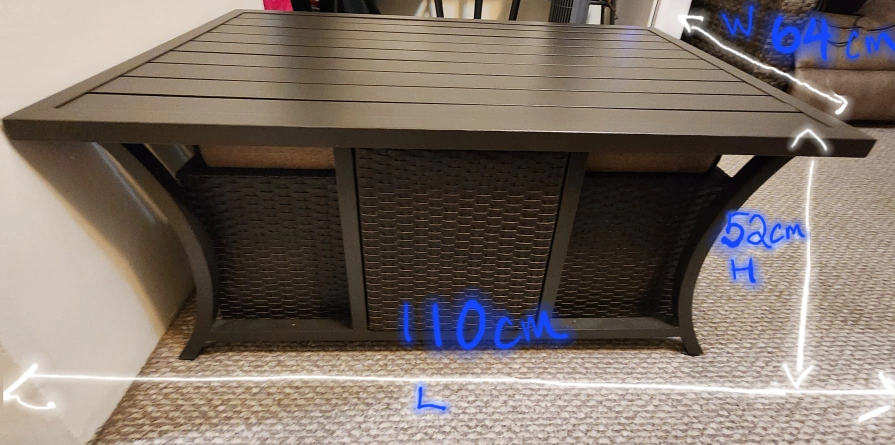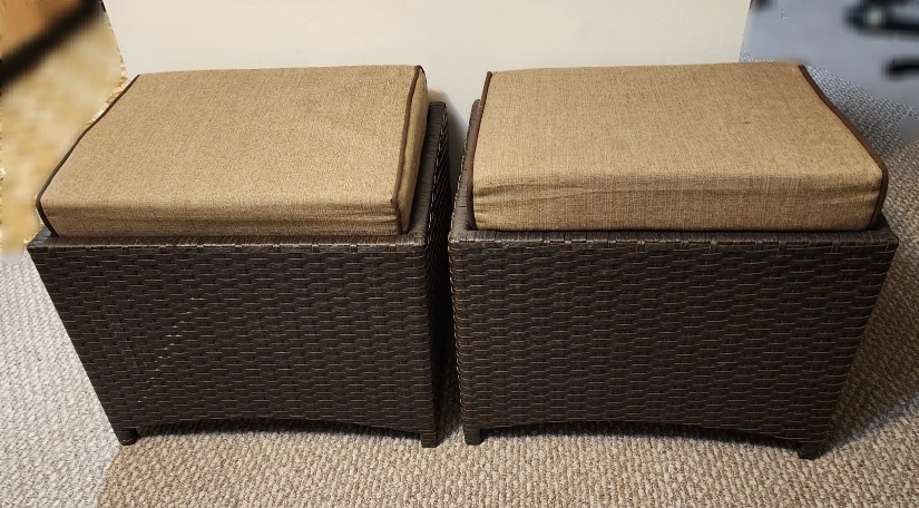 Set includes 2 chairs, a coffee table, and 2 ottomans. Coffee table has lift-up top with storage and removable cushions. $150 for everything.