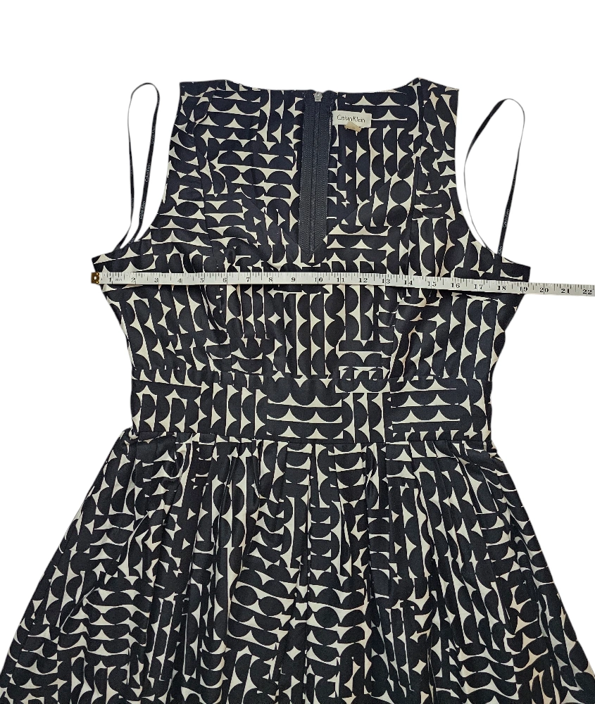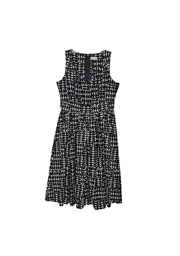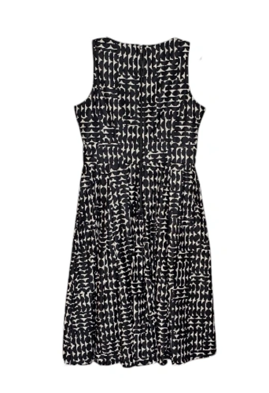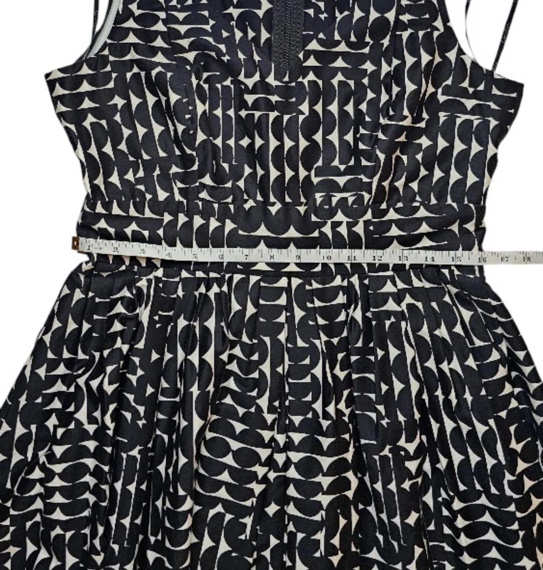*** PICK-UP AT BROADVIEW & DANFORTH AREA *** Originally $210 + tax Aside from the size tag, it's in beautiful, like-new condition. Mid-century modern vibe. Sleeveless V-neck Fit and flare - very forgiving and flattering silhouette for most figures Box pleats Lined bodice Thick, high quality, smooth cotton fabric Long zipper closure at the back. Midi length This would look great on its own, or coupled with a bold, solid, jewel-toned blazer. For example, a fuchsia or Kelly green. Due to the substantial weight of the fabric, despite this being a sleeveless dress, I would definitely consider this worthy of wearing in the fall and winter as well as the spring and summer. Measurements and materials are included in photos. My home is pet-free and smoke-free.
