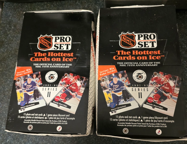 Two packs of 1991-92 NHL Pro Set cards, two sealed packs of 1991-92 Coupe Memorial Cup cards, and two packs of 1990-91 Original 6 cards. Make me an offer.