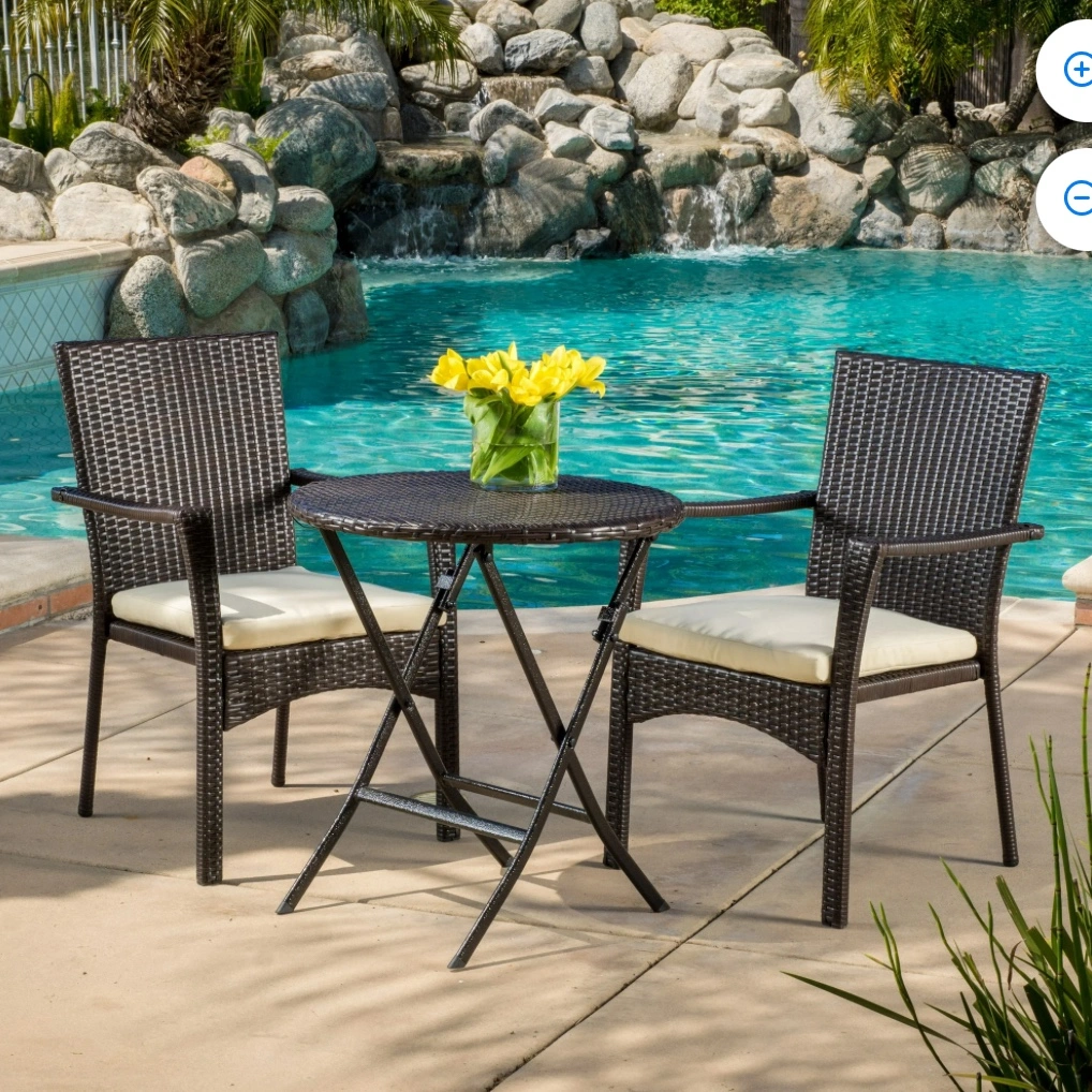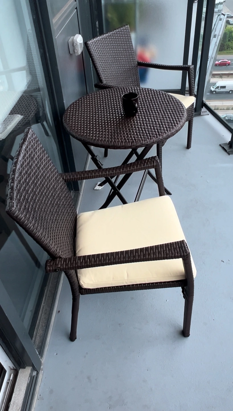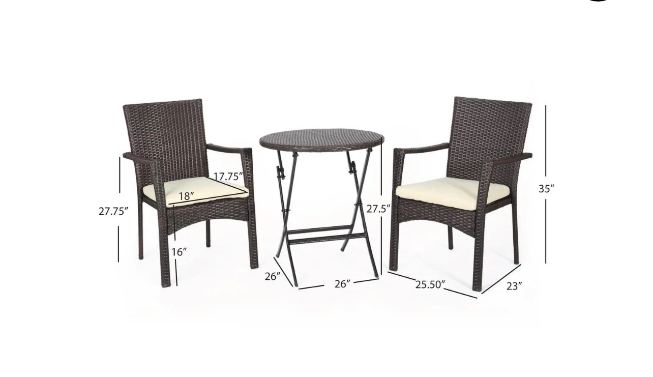 Moved to a new condo unit with no balcony Item like brand new literary no flaws 2 chairs 2 cushion pad Table As seen on photo Item is currently disassembled pick up ready Easy assembly (bolts, tools and manual included) Can help re assembled for additional $20