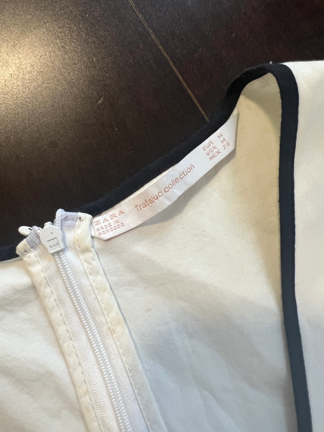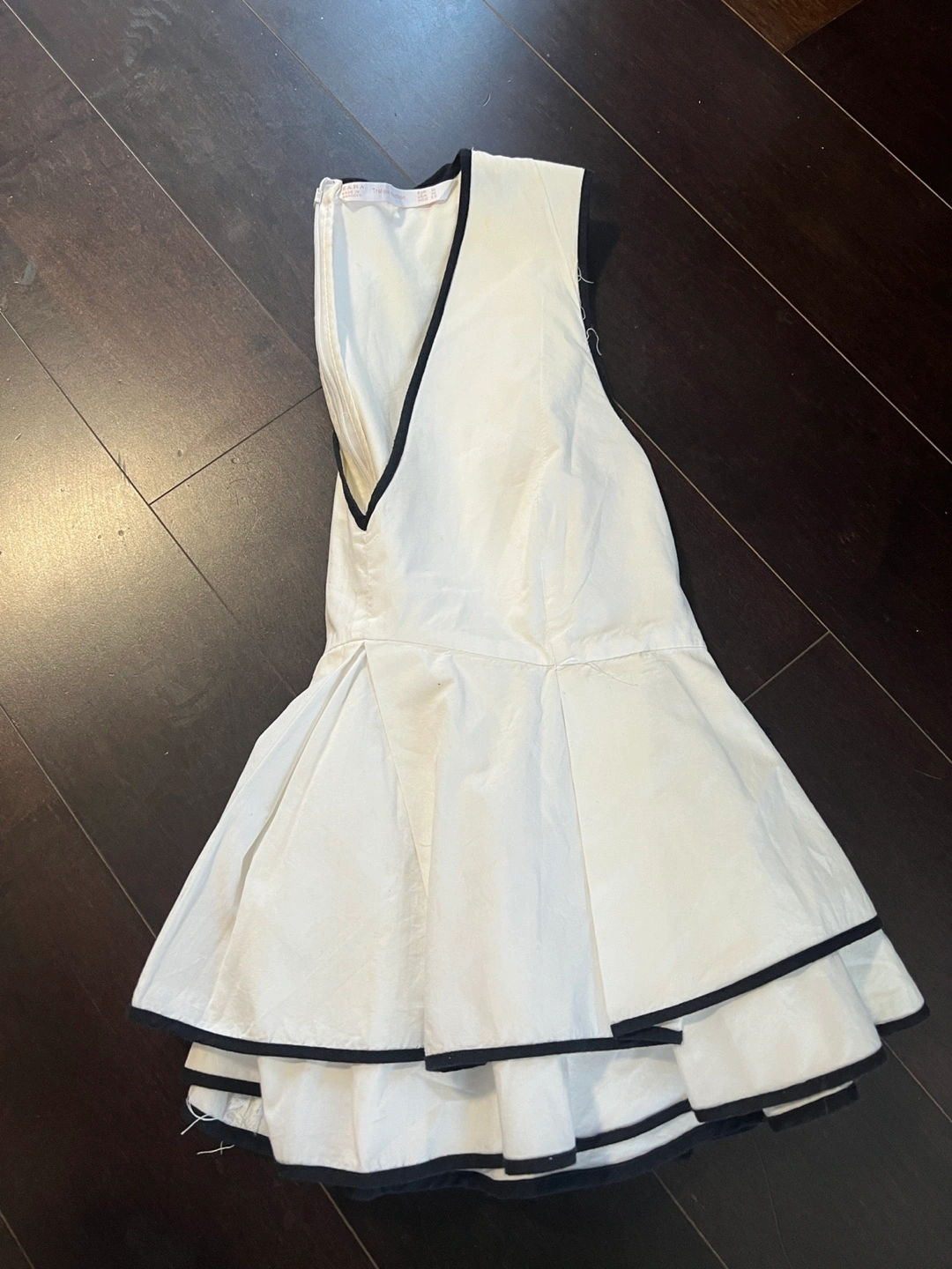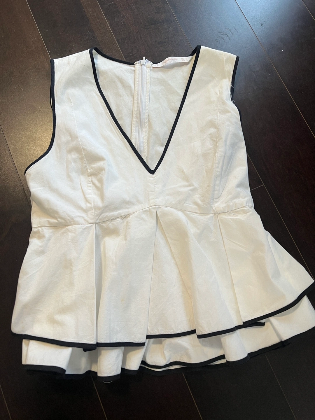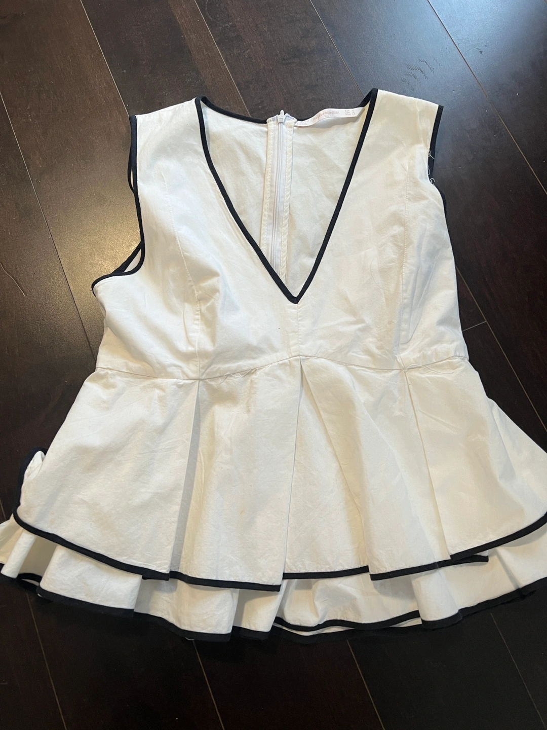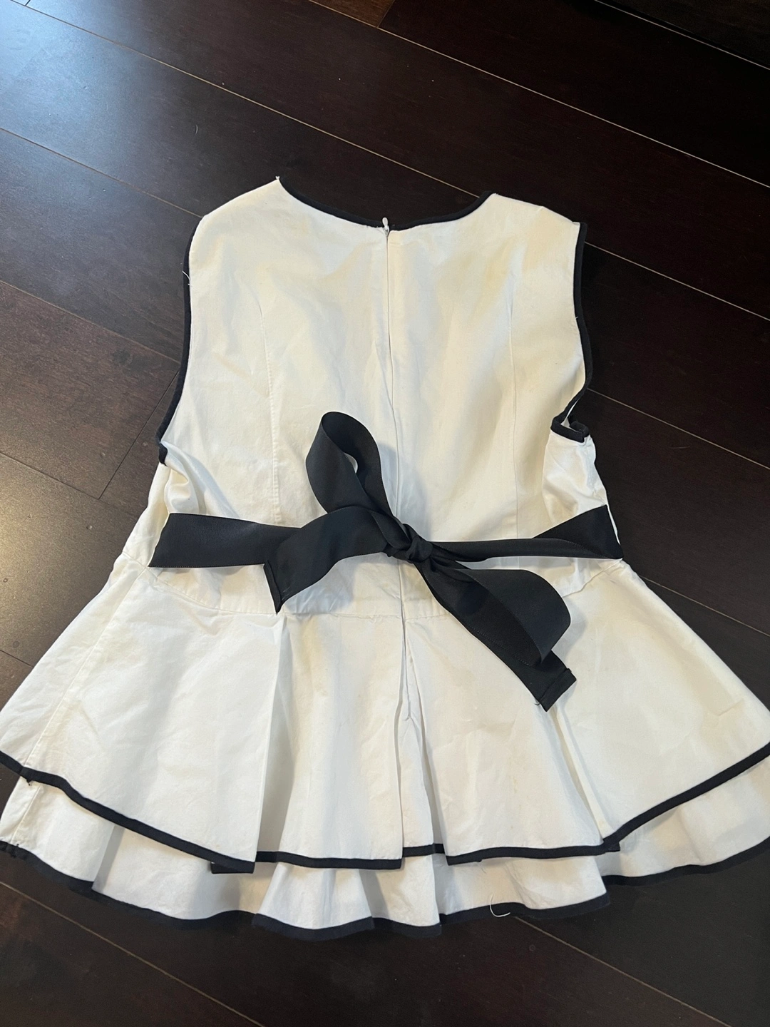 White sleeveless blouse with black trim and a black bow. Size M. Pick up downtown only