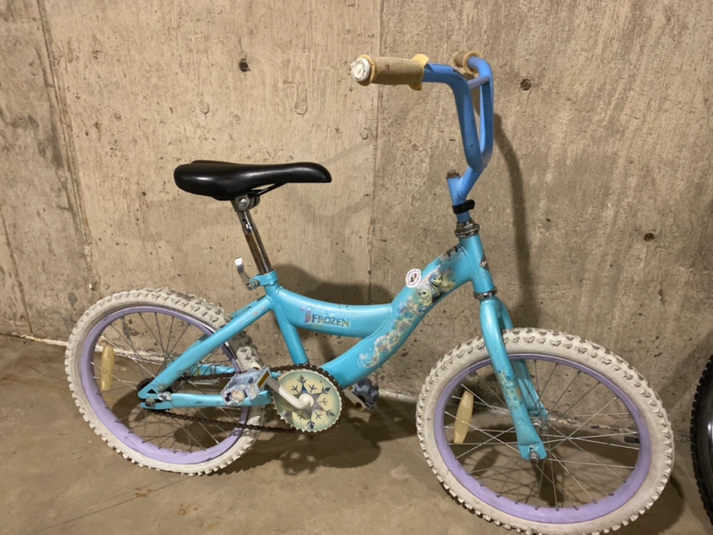 Girls bike with Frozen graphics. Tire is flat and will need to be fixed