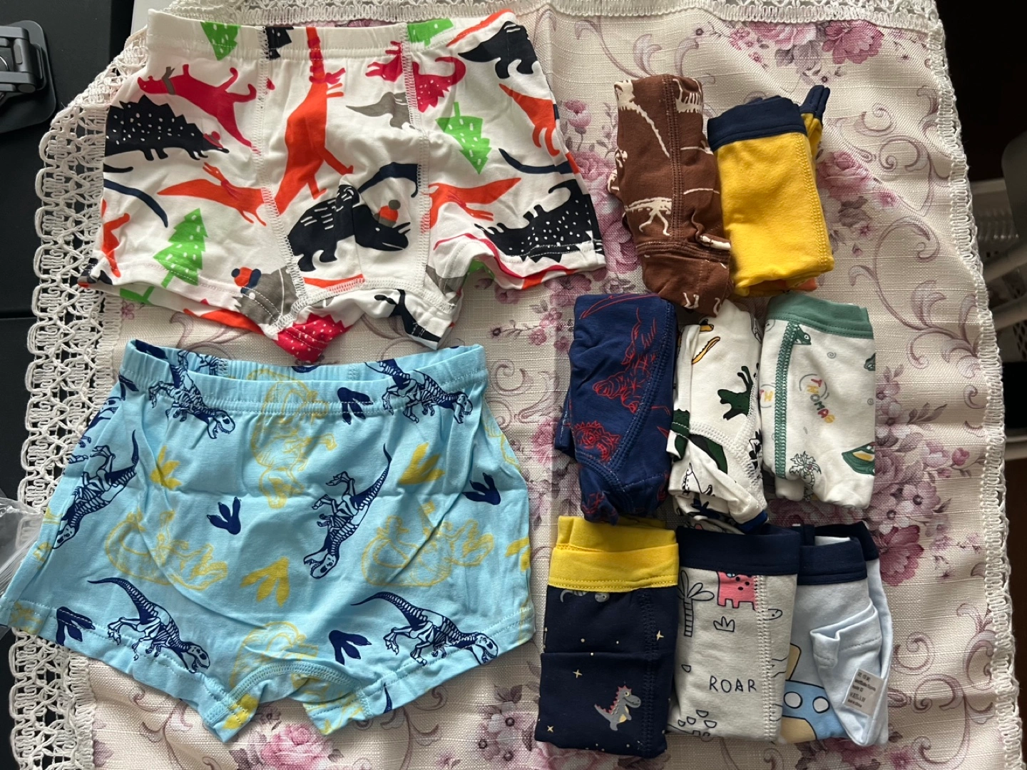 10 pack of boys' underwear in assorted colours and dinosaurs patterns. Size 110 (M). Elastic Waistband, Soft & Breathable Cotton Cash only and pick up at Port Coquitlam