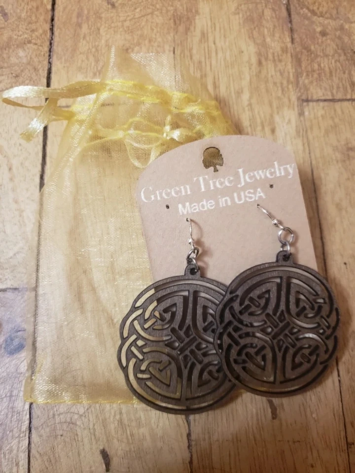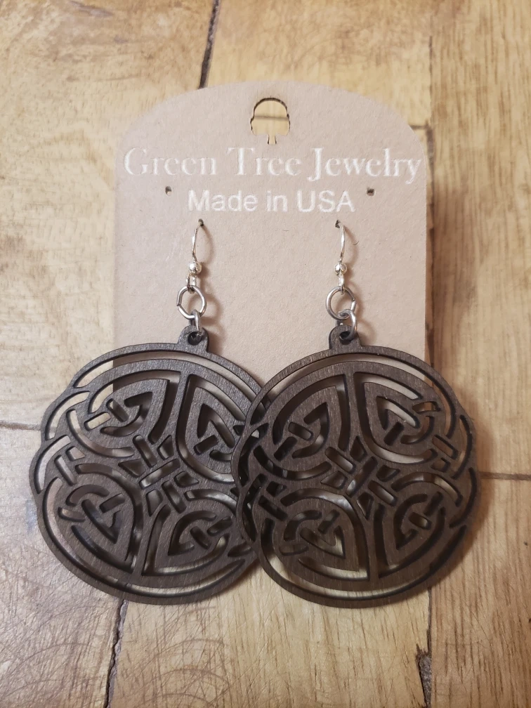 Wooden earrings, made from eco-friendly, Green Tree Jewelery.