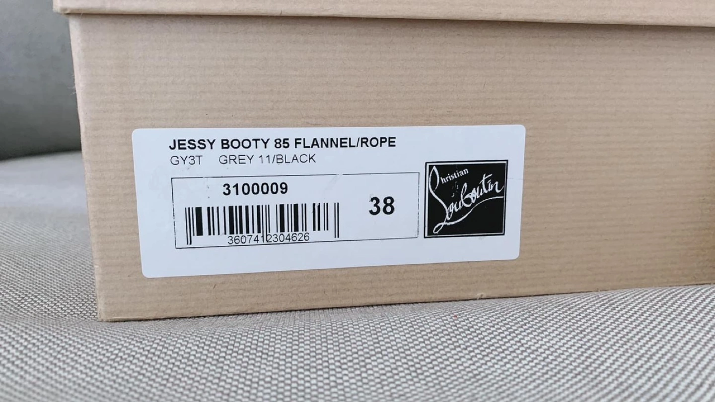 Grey flannel and rope wedge bootie. Size 38. Comes with box. I only tried it on. True to size.