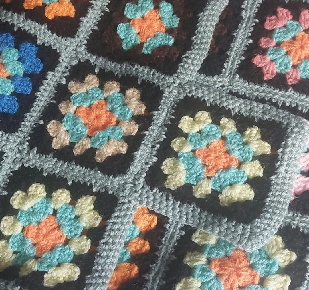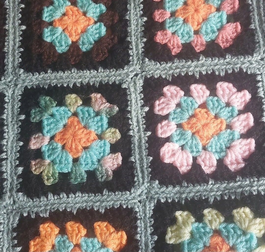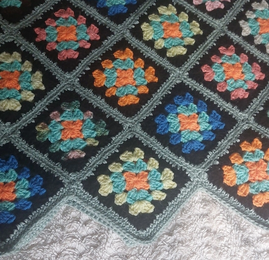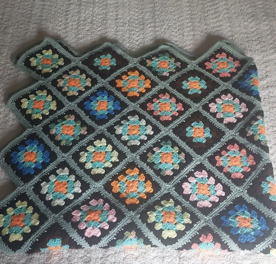 Handmade granny square crochet double-sided finish throw/blanket. Size 52"×51"
