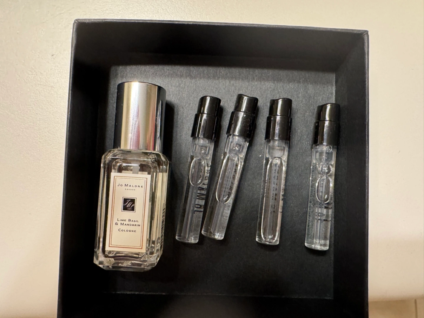 Travel size Lime Basil & Mandarin Cologne (9ml) Sample size English Pear & Freesia Sample size Wood Sage & Sea Salt Sample size Nectarine Blossom & Honey (x2)