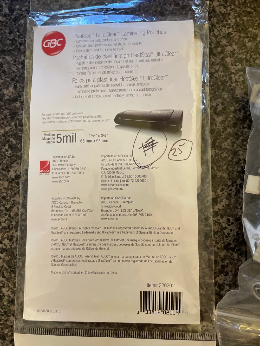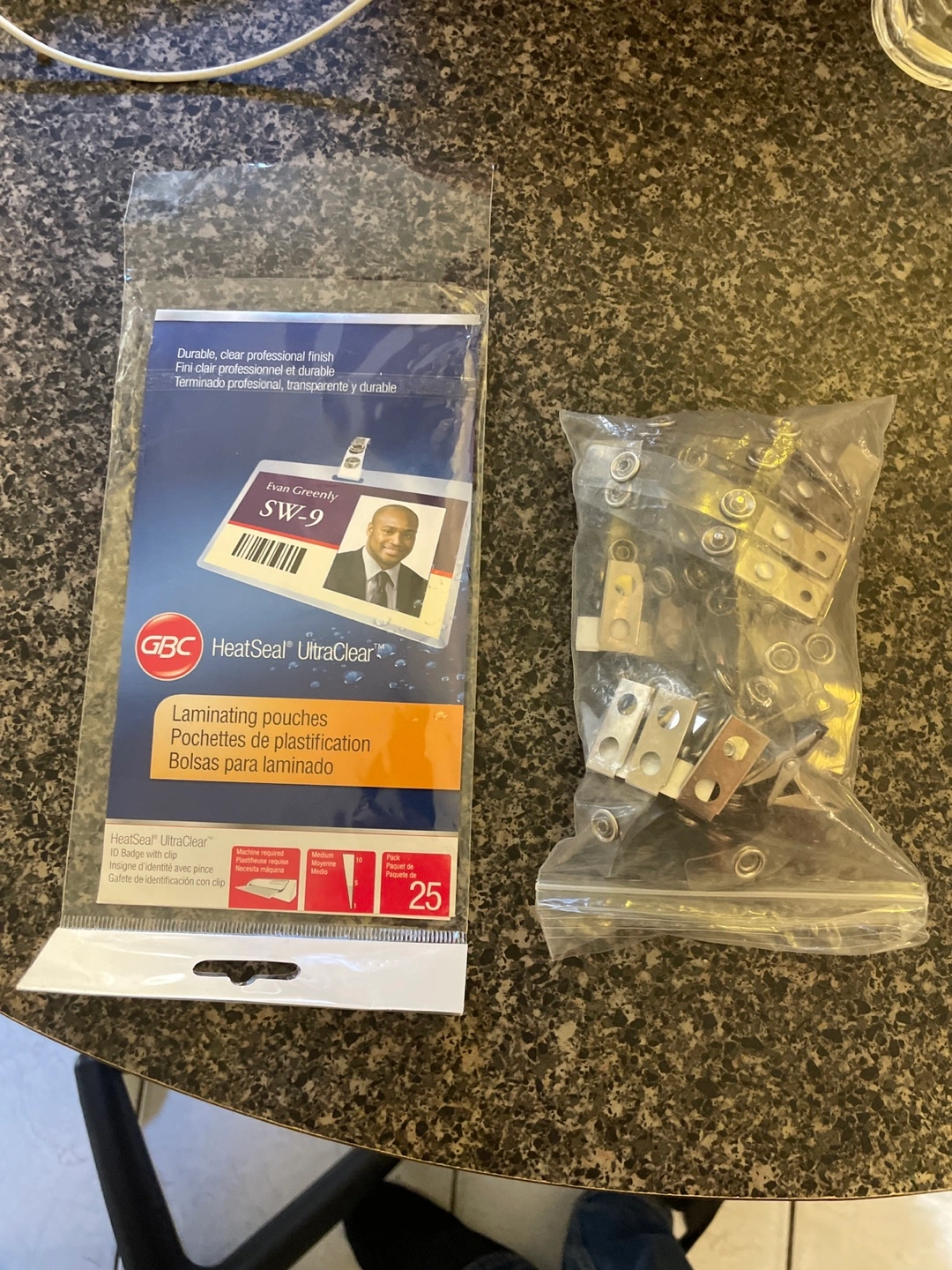 Laminating pouches. 5 mil. 25 pack. Medium size. We got these for an event and have one pack left over. Pack was opened but still contains 25 pouches as well as the laminating sleeve. We’ve included 25 clip holders as well. Pouches are 65x95mm. Bug free, 3 cat household. No smoking in household. Pickup only.