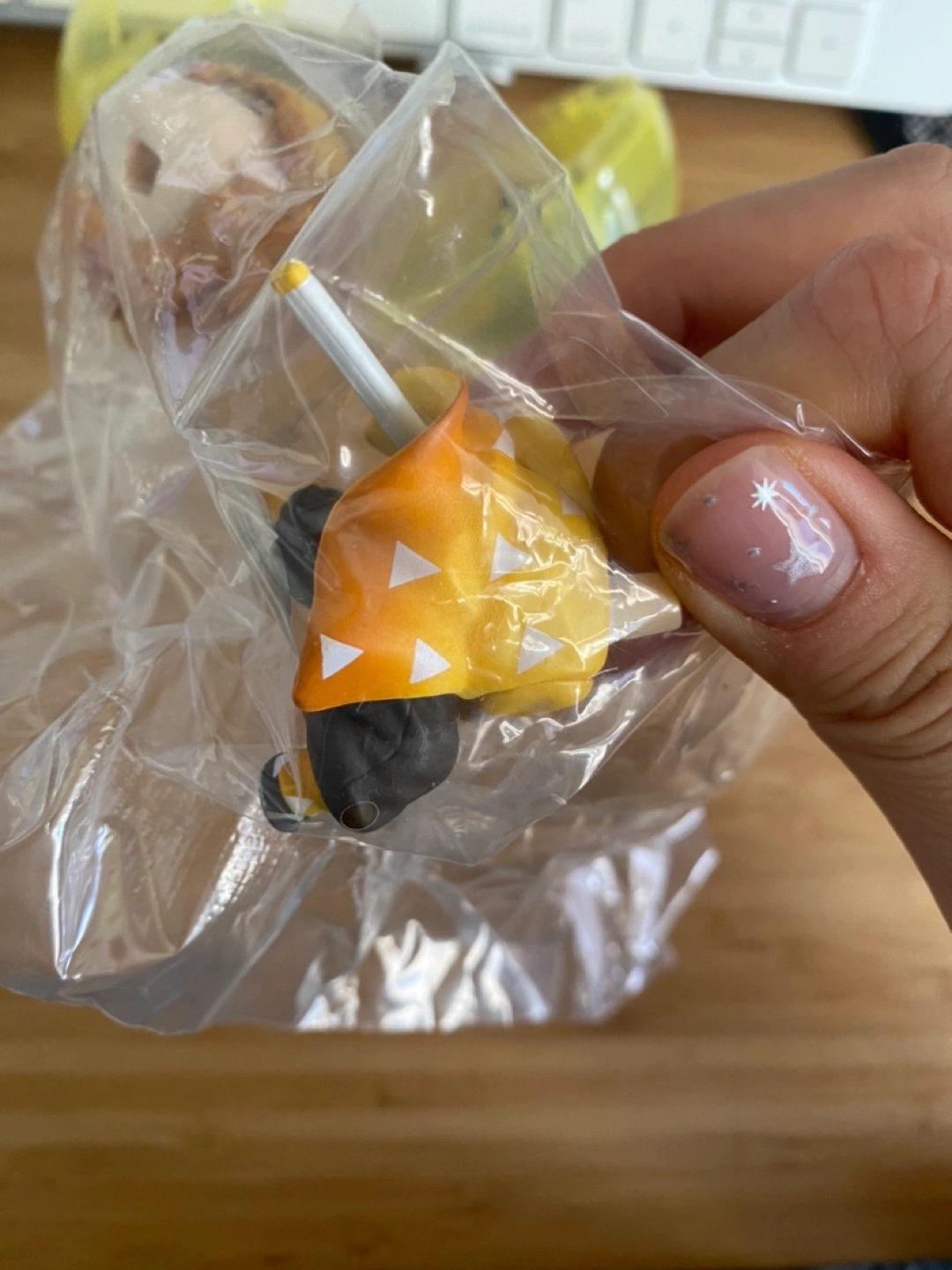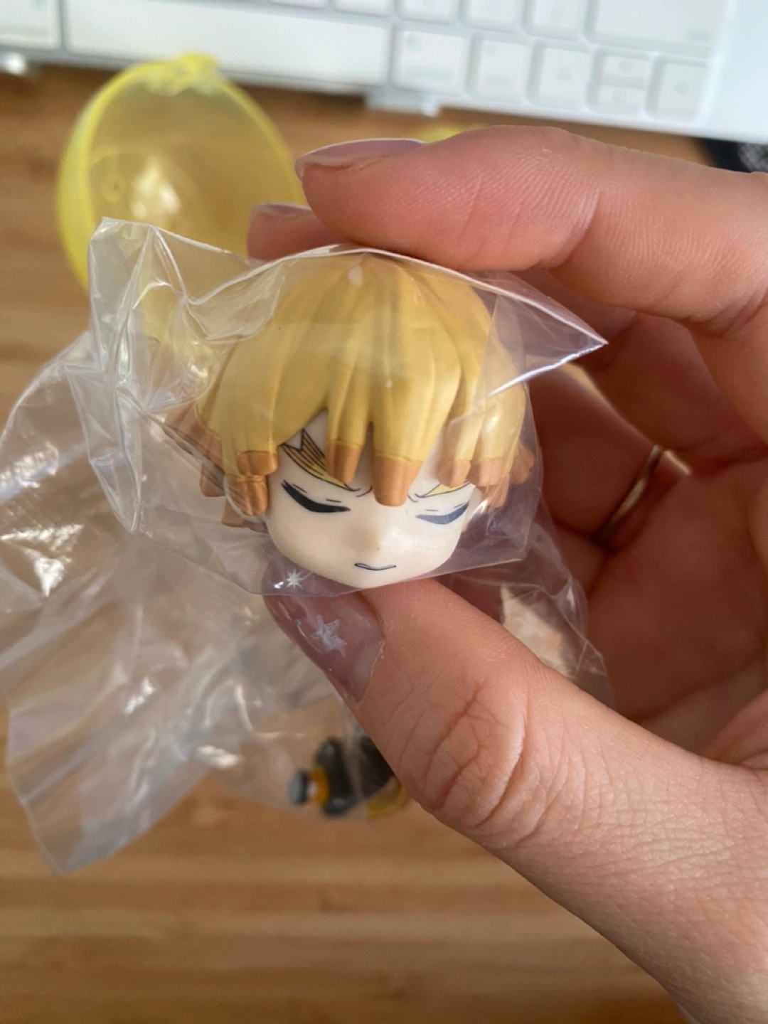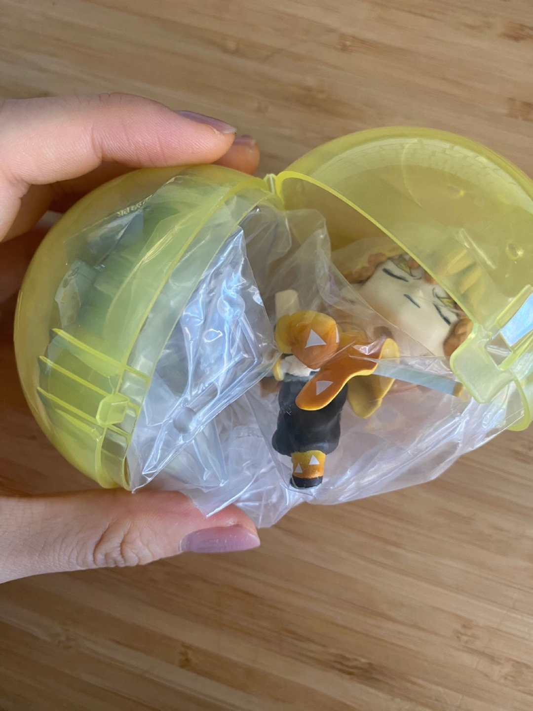 Demon Slayer Zenitsu Agatsuma figure - this is a premium Bandai gacha . Comes in a plastic ball capsule. I can meet at Adelaide east & sherbourne or king station most of the days!