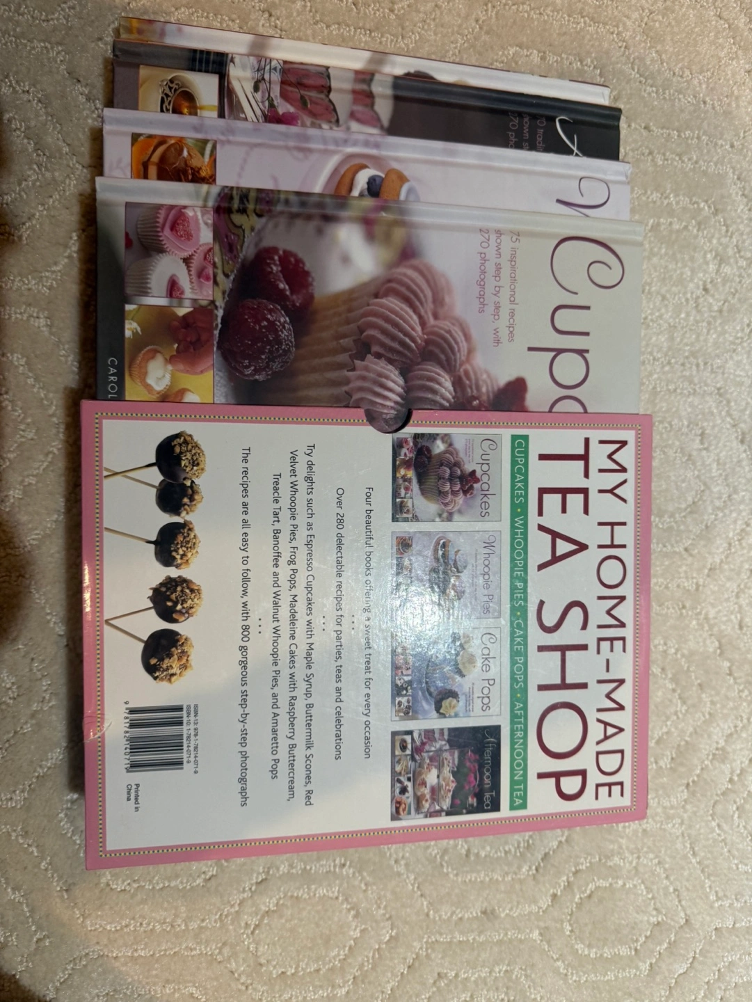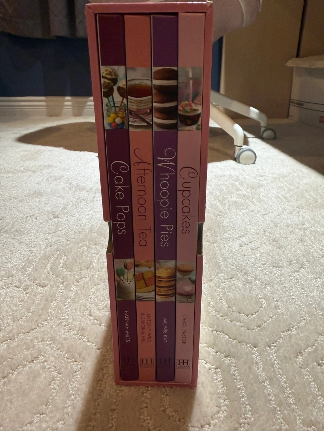 Set of 4 cookbooks: Cupcakes, Whoopie Pies, Cake Pops, Afternoon Tea. Each cookbook features over 200 recipes, colour photos, and step-by-step instructions. Great also as a table side book