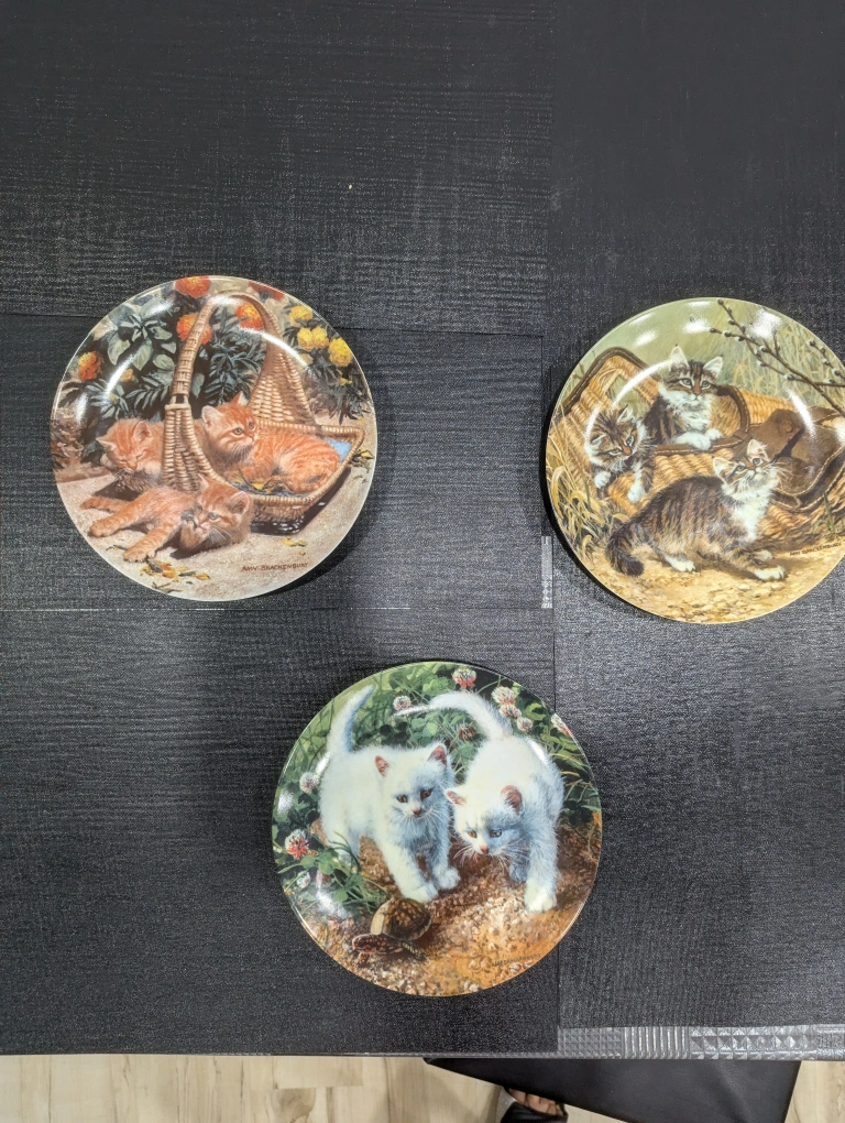 A set of 3 plates from Amy Brackenbury's Cat Tales collection, each measuring 8.5 inches in diameter and in excellent condition. $15 each and cash only. Pickup close to Bovaird/Torbram (Brampton)