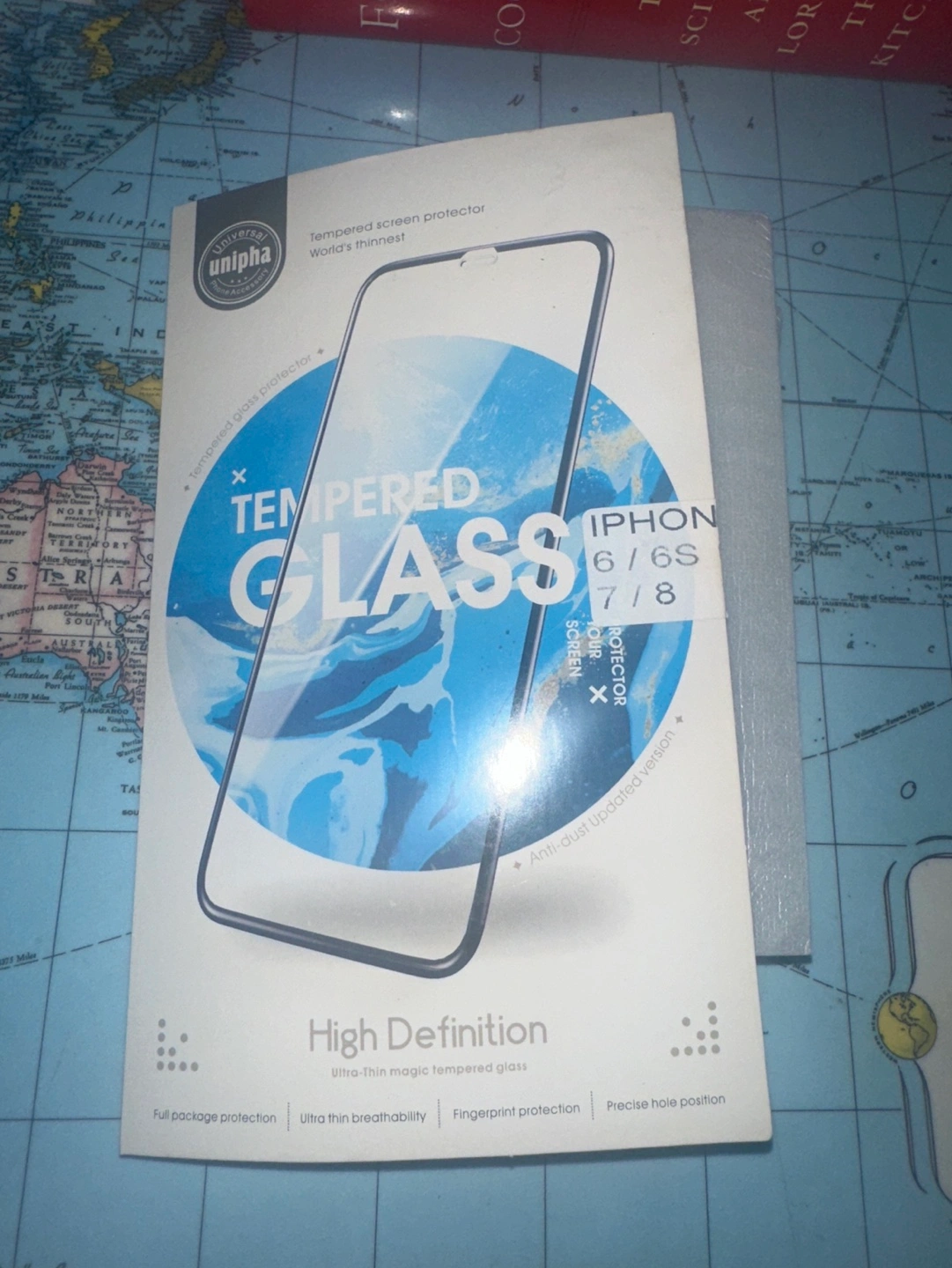 GLASS Screen protector, brand new, never used. Includes 4 screen protectors in the package. FOR IPHONE 6/6s/7/8