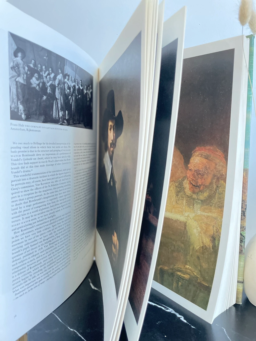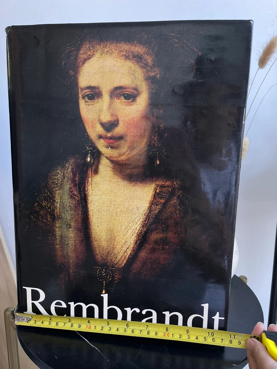 Hardback book about Rembrandt, includes many colour images. Approximately 11 inches tall. No markings or tears.