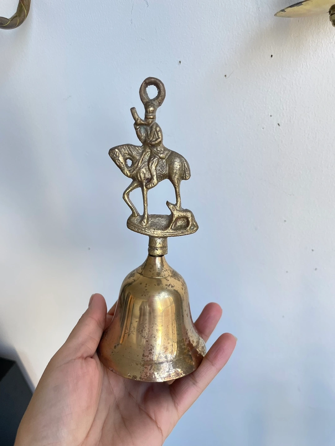 Solid brass bell with a rider figurine on the handle. Made in India.