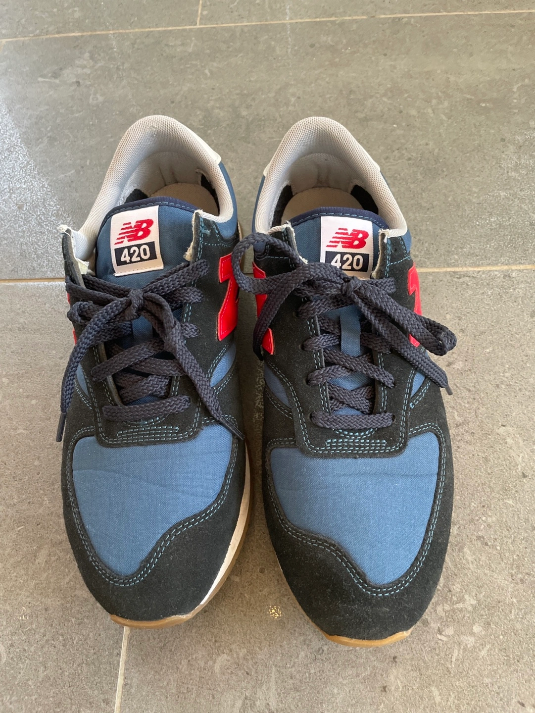 Worn only few times. Great condition! Blue, black, and red sneakers with a gum sole.