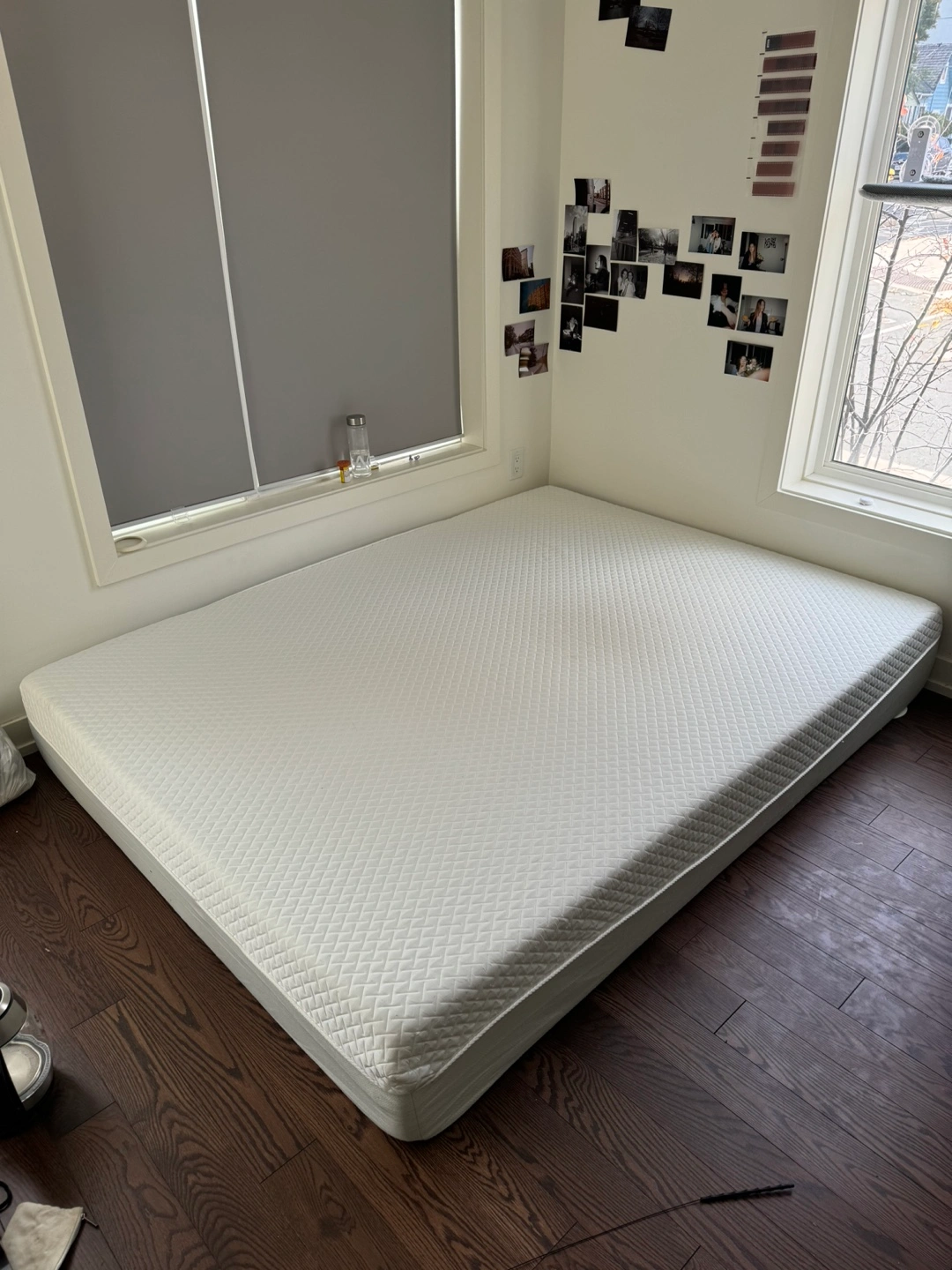 Queen size mattress from OkiOki. Used for 3 years. In excellent condition. Has memory foam and cooling technology. Very comfortable. Original price was ~$1000 I would keep it for longer but i am moving out of Canada. Available for pickup during the week of 25th. Please let me know your questions.