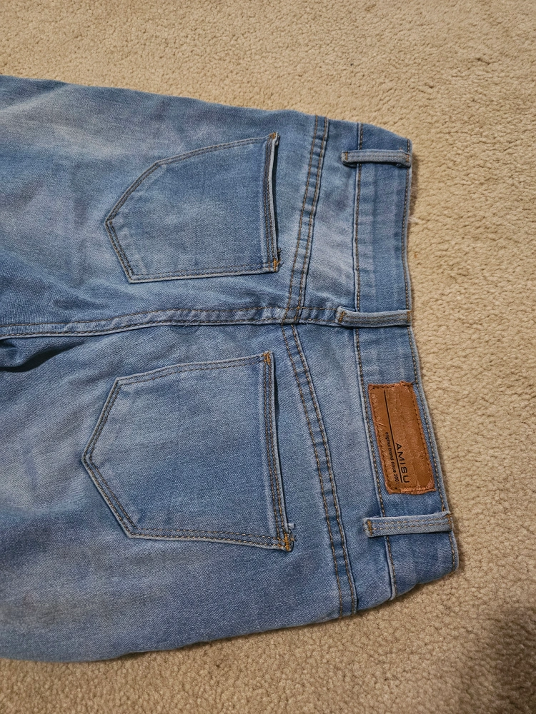 Light wash blue denim jeans. Size 26-28. bought in Germany.