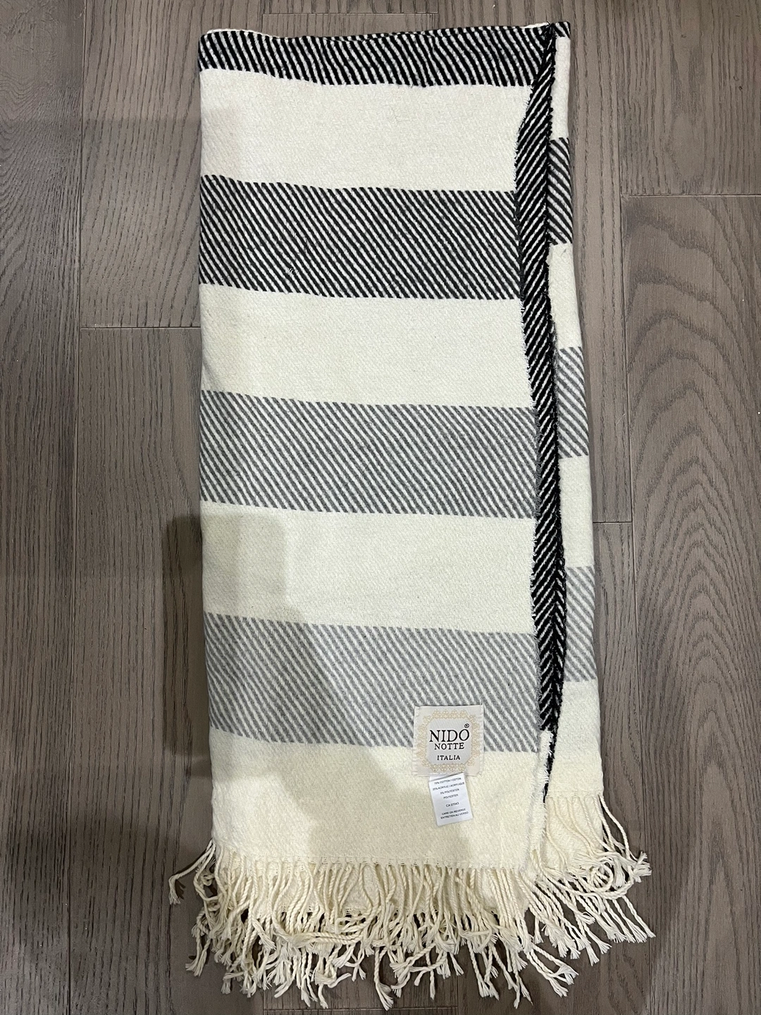 Striped throw blanket with fringe. Made in Italy. Nido Notte Italy Super Soft Warm Wool Blanket Throw Shawl Fringed 48" x 54"