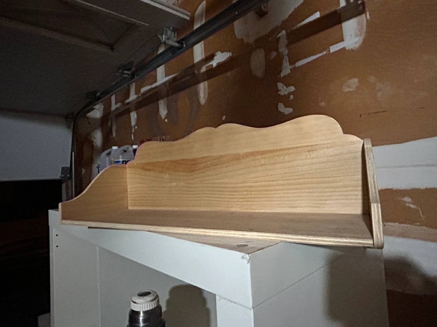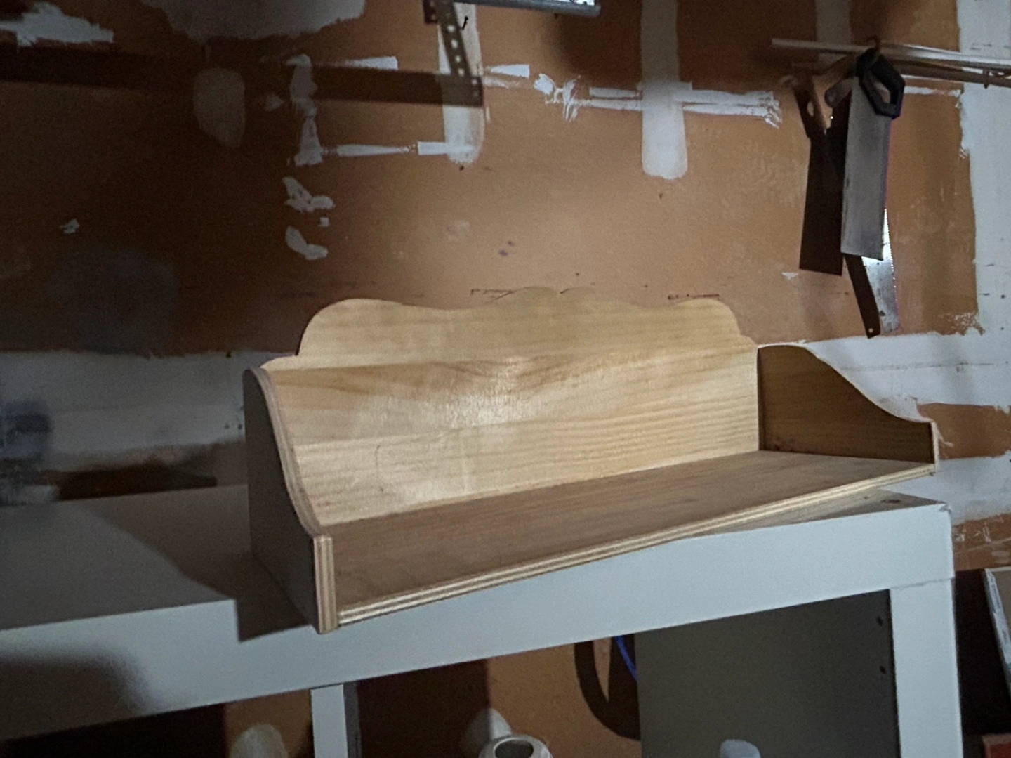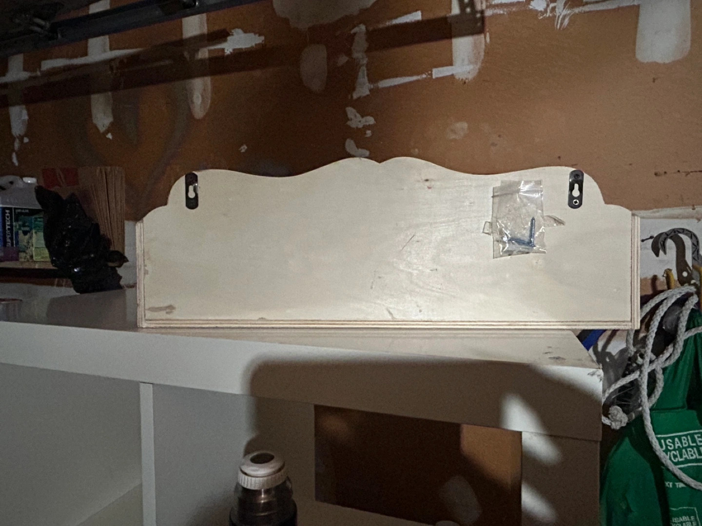 Small wooden shelf, great for displaying items. Comes with mounting hardware.