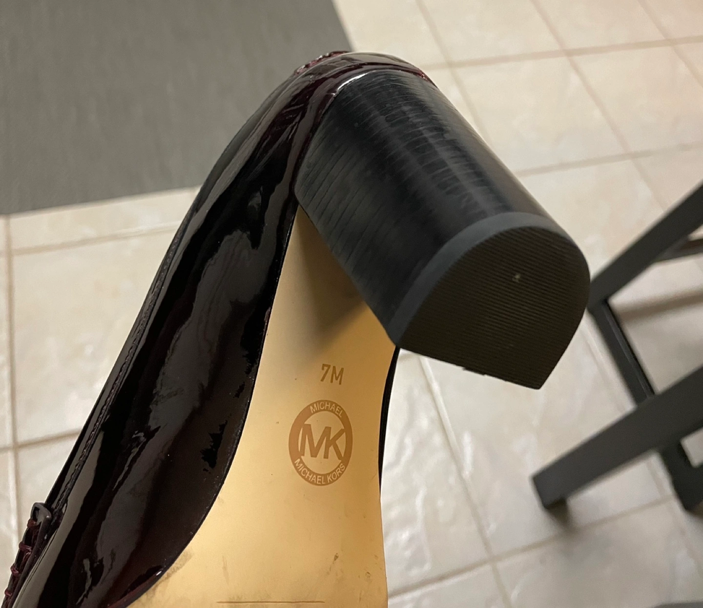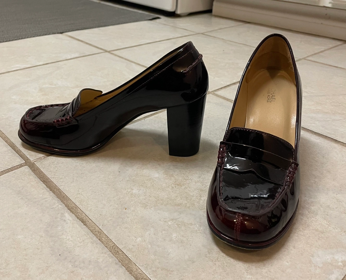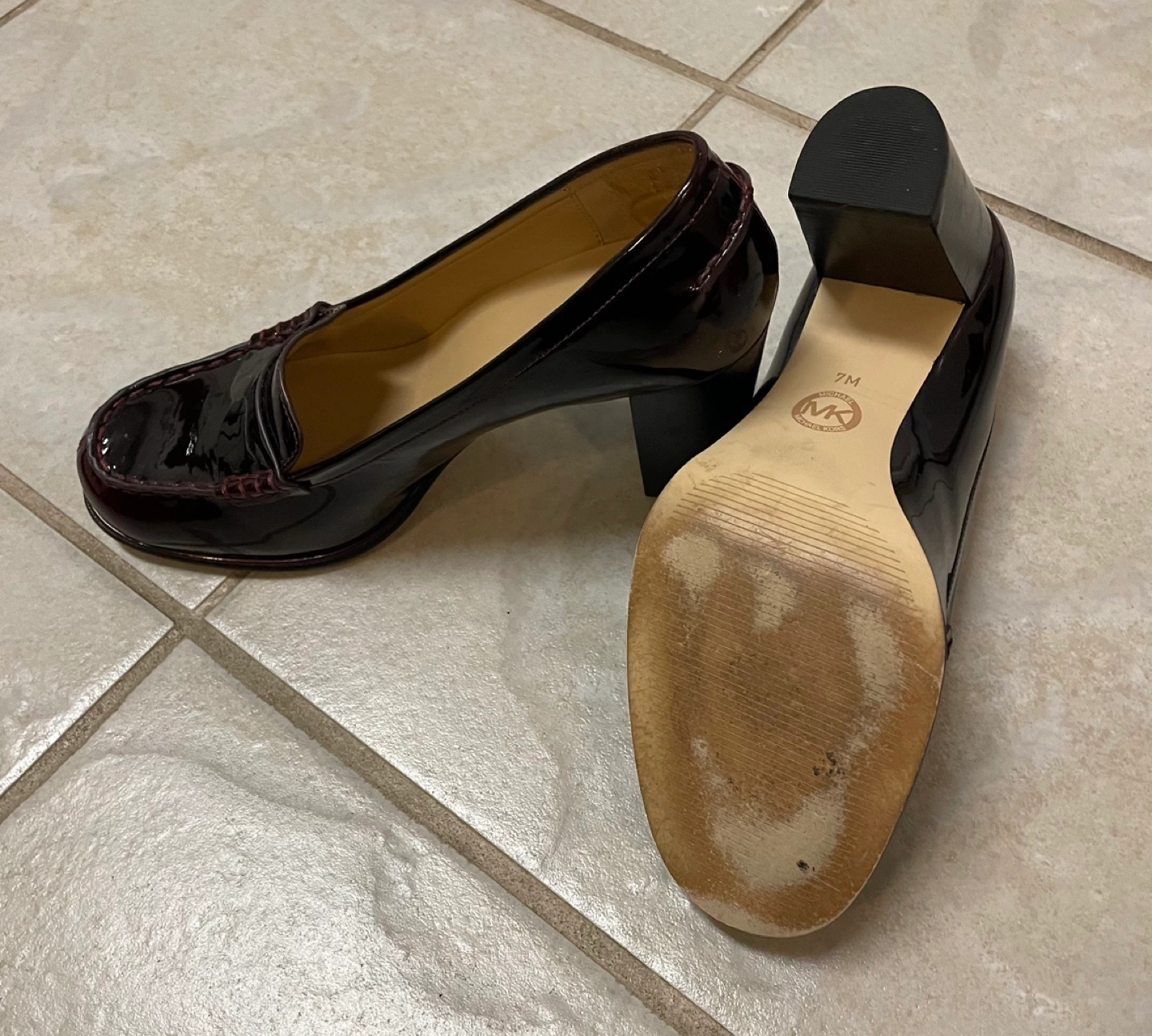 Burgundy patent leather heels. Size 7M.