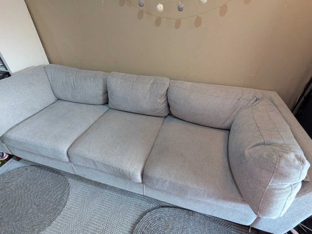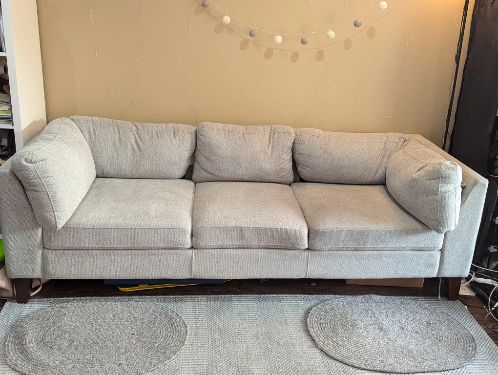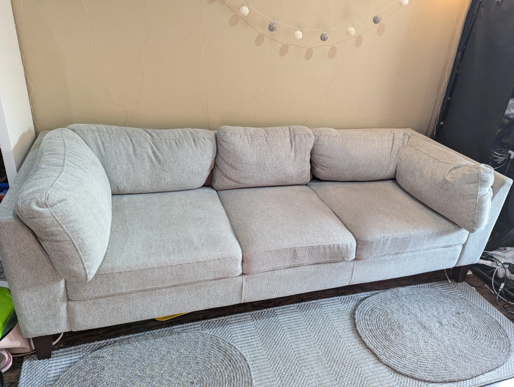 Structube couch (Jade) in great condition. Sturdy, very comfortable and clean with no stains as only used for a few months. Smoke free, pet free home. Original $1299 + HST Giving out Costco runner rug and mats free (see picture for setup) as moving out.