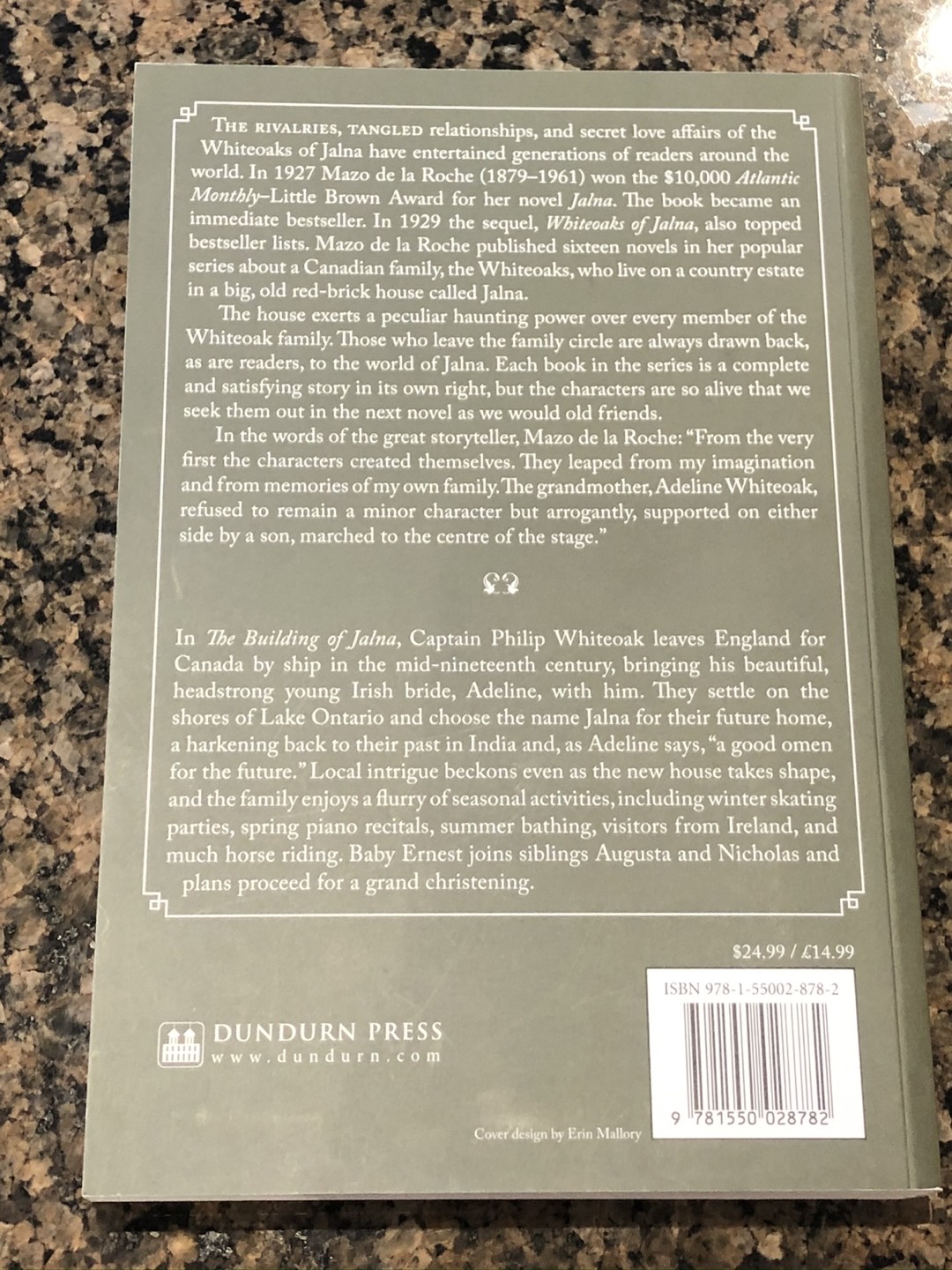 Jalna, Whiteoaks of Jalna, and The Building of Jalna Paperback Books $10 each or take all 3 for $25 Cash only please Very good used condition Written by Mazo de la Roche First published in 1927, Jalna is an international bestseller. Jalna is the first book in the popular series about a Canadian family named Whiteoak, who live in southern Ontario in a red-brick house called Jalna (Benares Historic House in Clarkson Mississauga). In Jalna, the unforgettable family makes its first appearance. Smoke free pet free home Mississauga Road and QEW Please see what else I have for sale . Thank you!