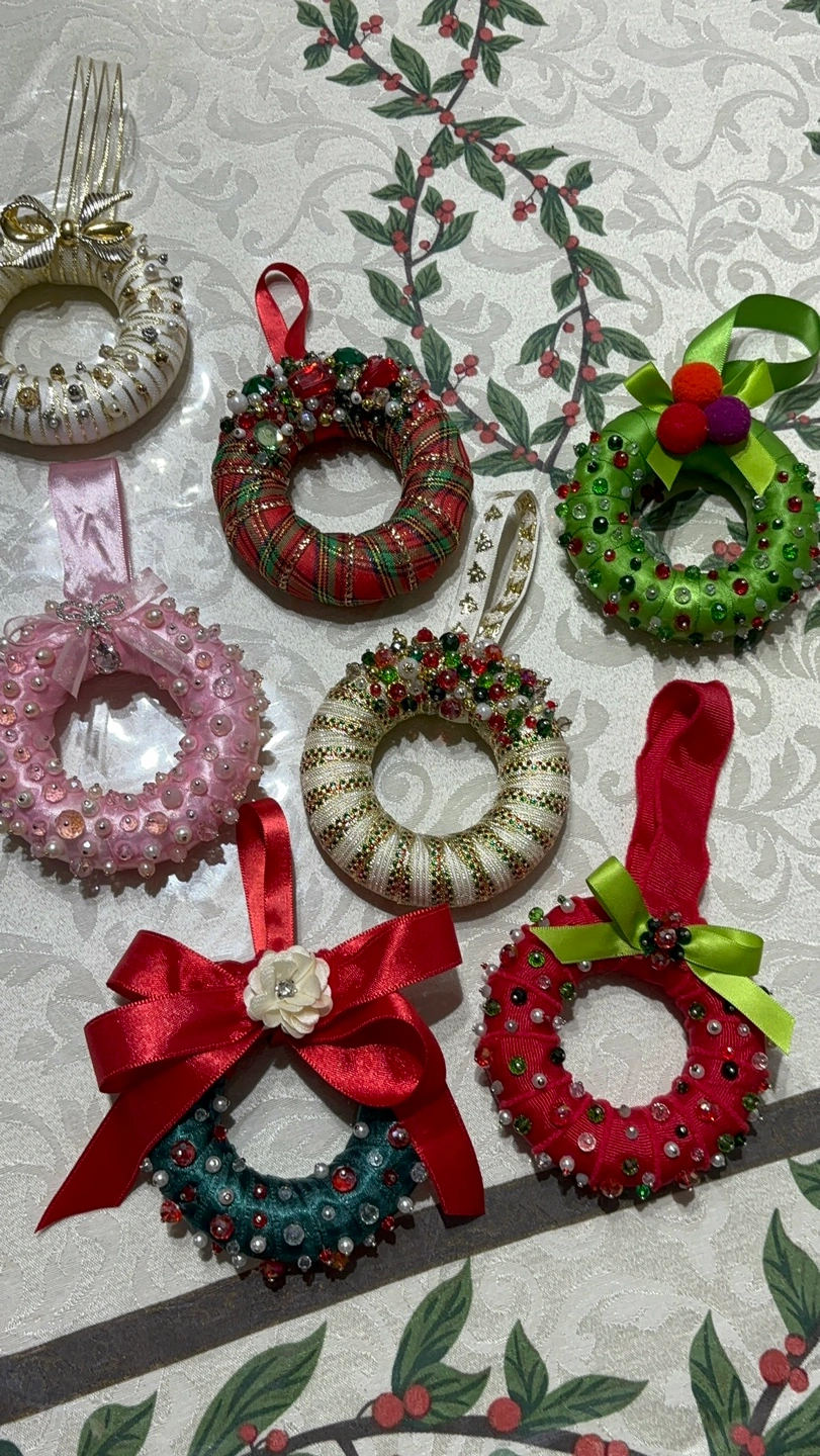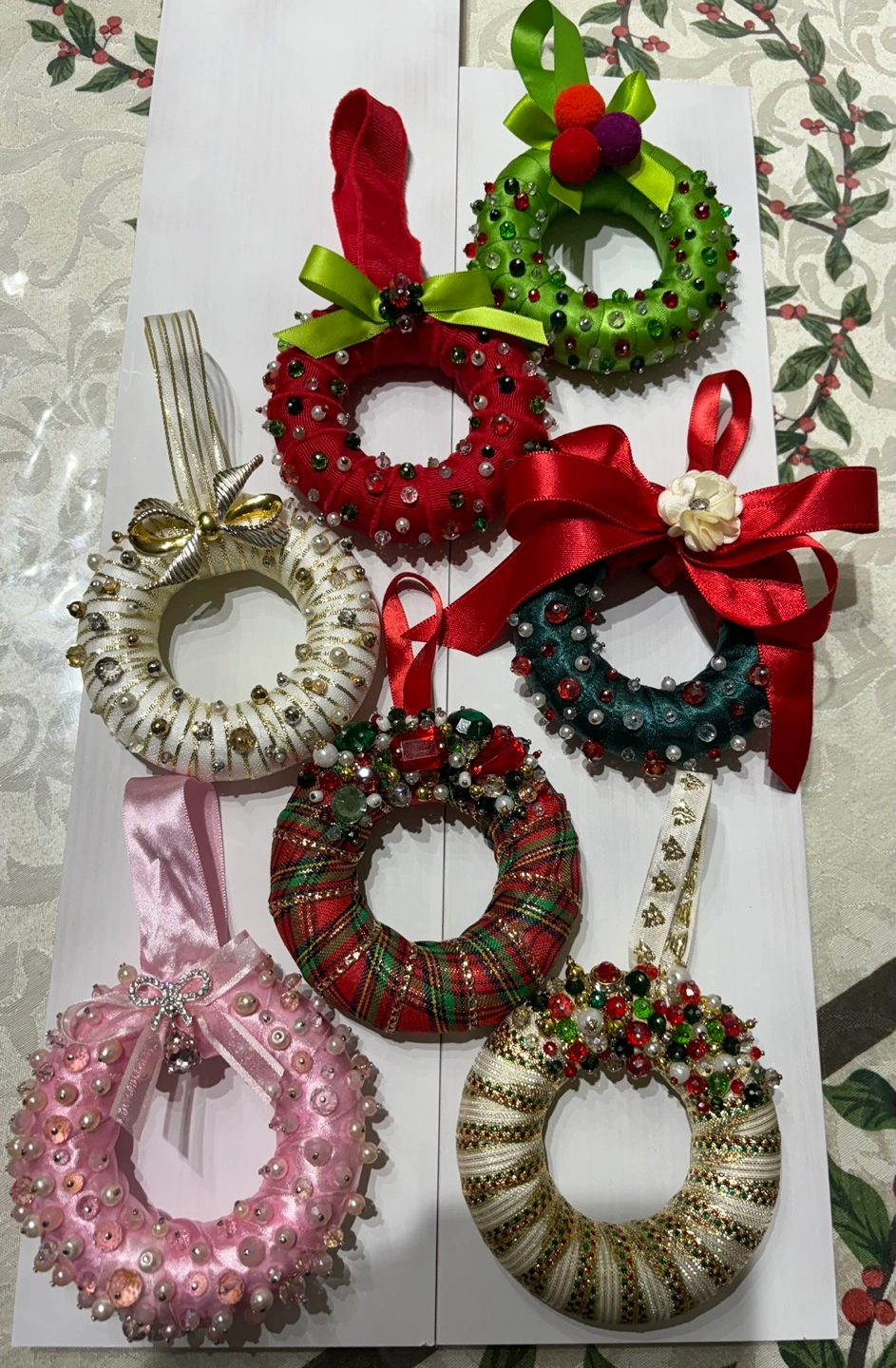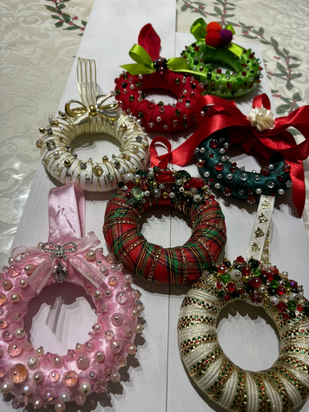 Adorable for Christmas tree ornaments or decor. Each ornament is made of fabric and adorned with beads and other embellishments. All ornaments are handmade. Size: 4”, only have the ones posted and 1 of each Selling each for $25 Or if you get multiple it’ll be $20 each No holds, first to pickup with cash only Pickup in Mississauga