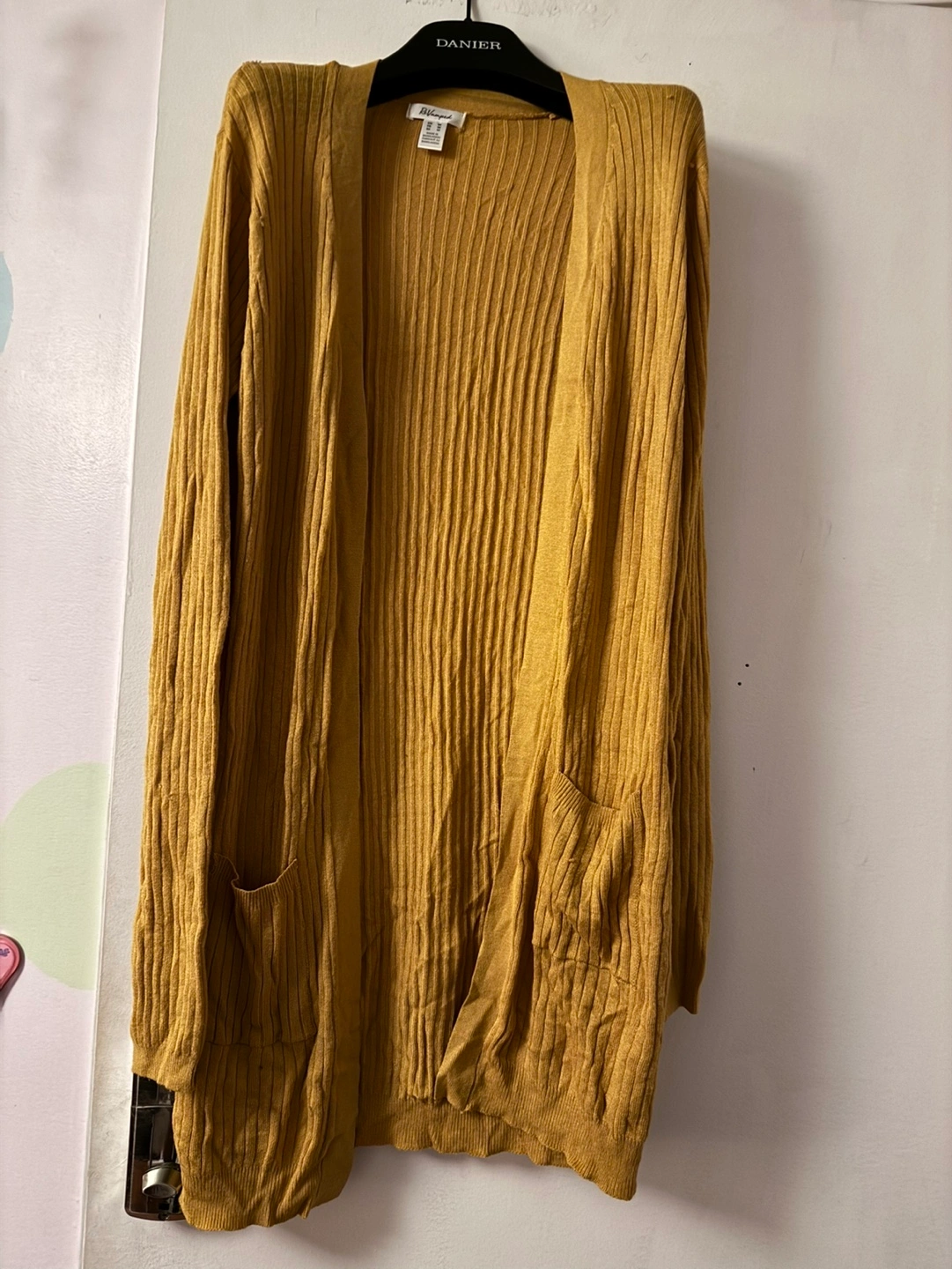 Long-sleeved cardigan with pockets. Ribbed knit.