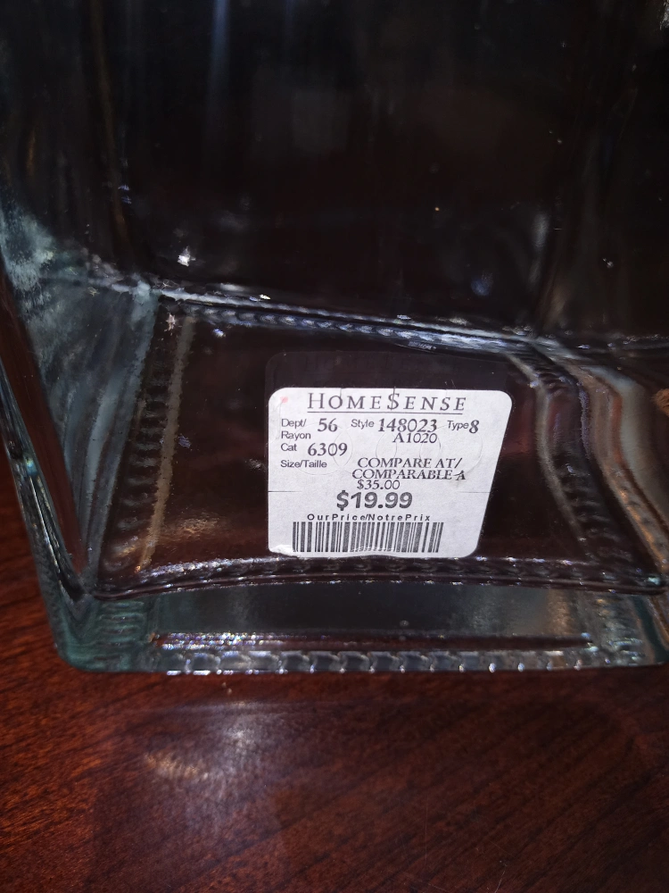 In very good condition. No chips or cracks. Like New. Measurements are: 6" inches in Width 14" 3/4 inches in Height 6" inches in Depth. It retails for $16.99 + tax at HomeSense. See all pictures provided.