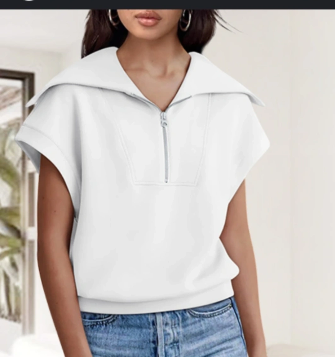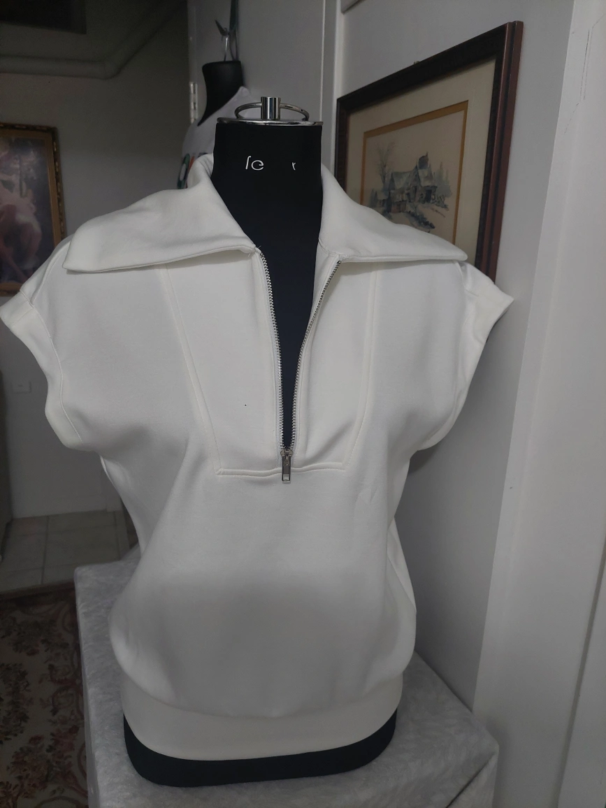 New without tag. White collared shirt with a zipper. Short sleeves.