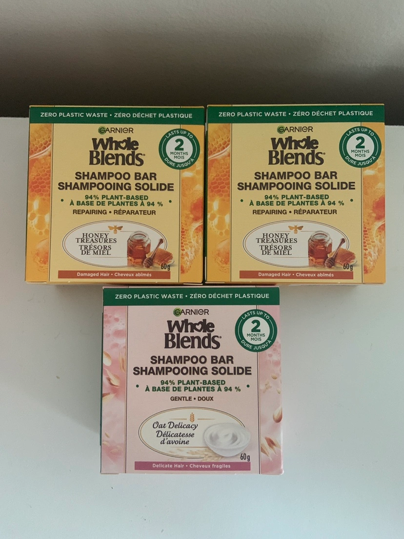 Solid shampoo bar, 94% plant-based, for delicate hair. Gentle and lasts up to two months. $3 each