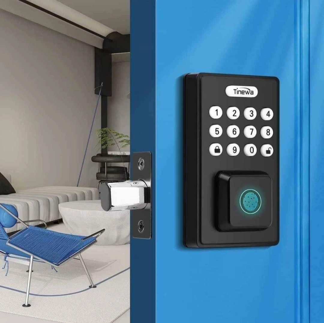 Brand new in box Tinewa Fingerprint Front Entry Door Lock, Exterior Smart Door Lock for Home Apartment, Electronic Keyless Entry Keypad Deadbolt with Keys, Auto Lock, Anti-Peeping Password, App Control.