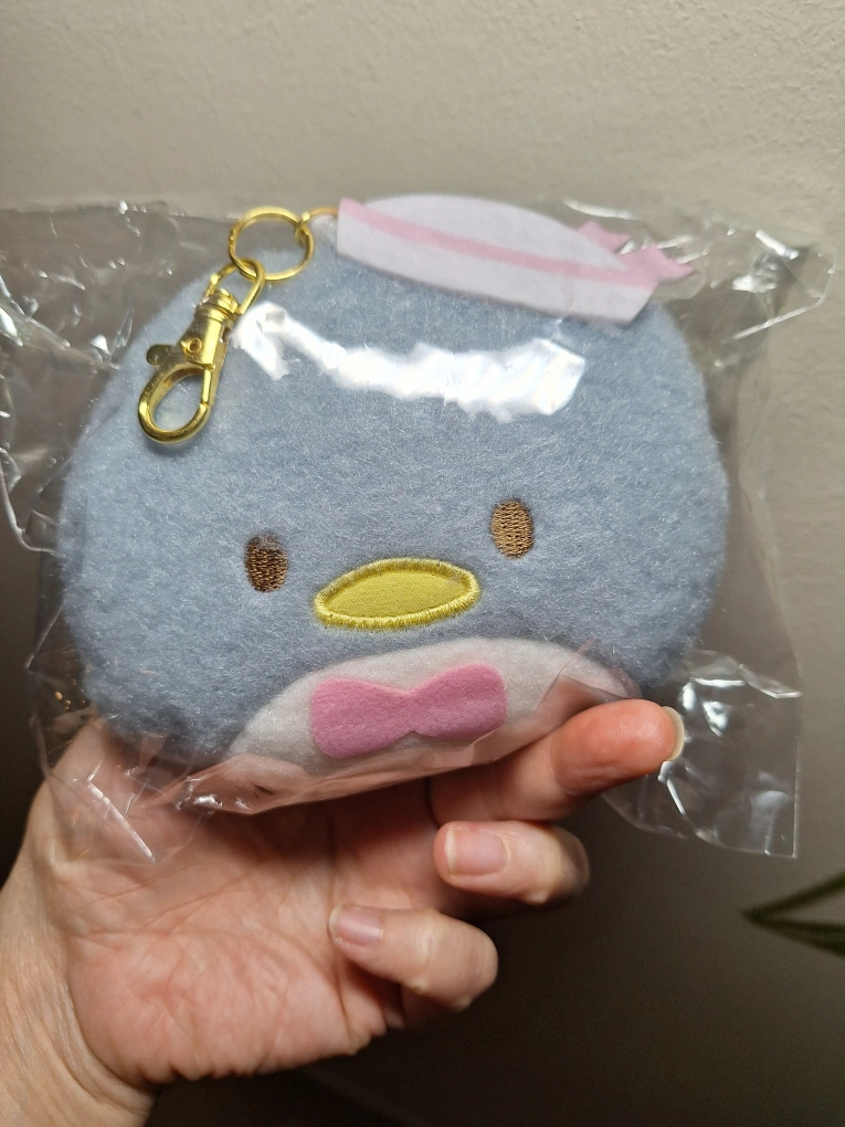 Tuxedo Sam Plush coin purse with a zipper. bought from Taiwan Duty Free Sanrio Store. Comes with a retractable gold keychain. Never used. Cash only pick up at Fairview Mall T&T Supermarket.