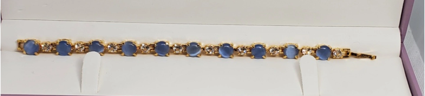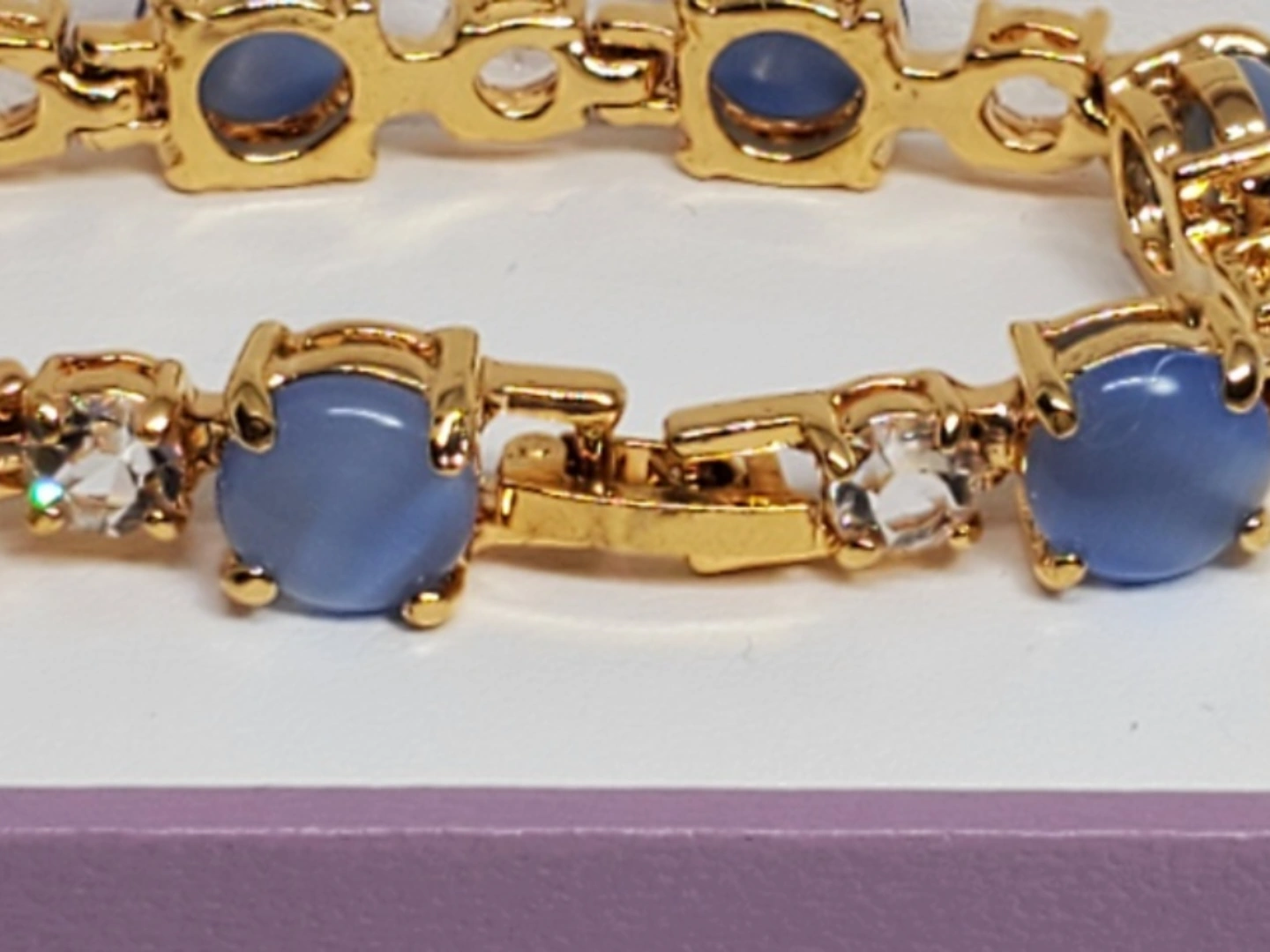 Cat Eye Glass bracelet size 7. Stud Earrings. 14K GP with folded box closure.