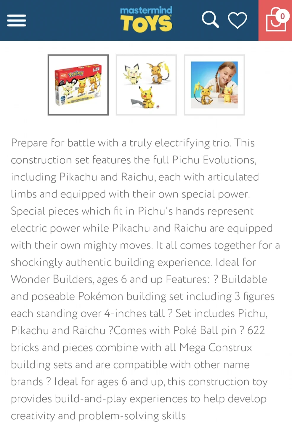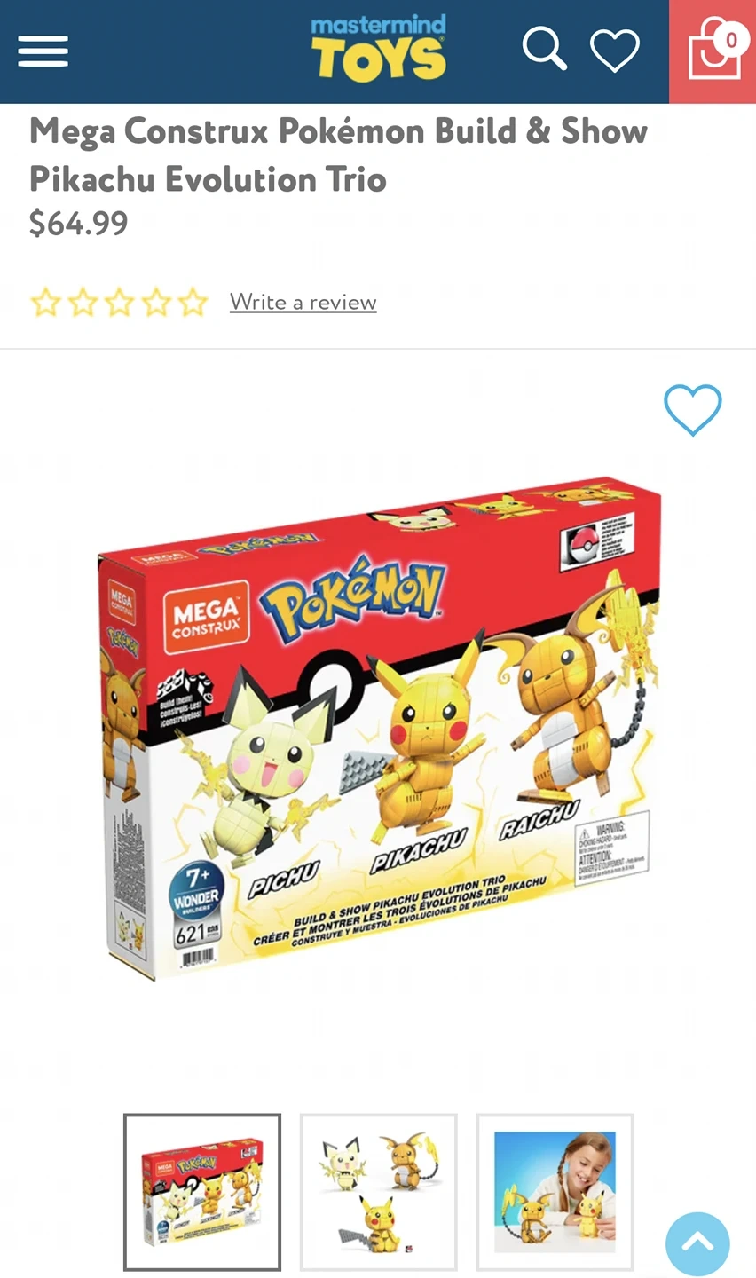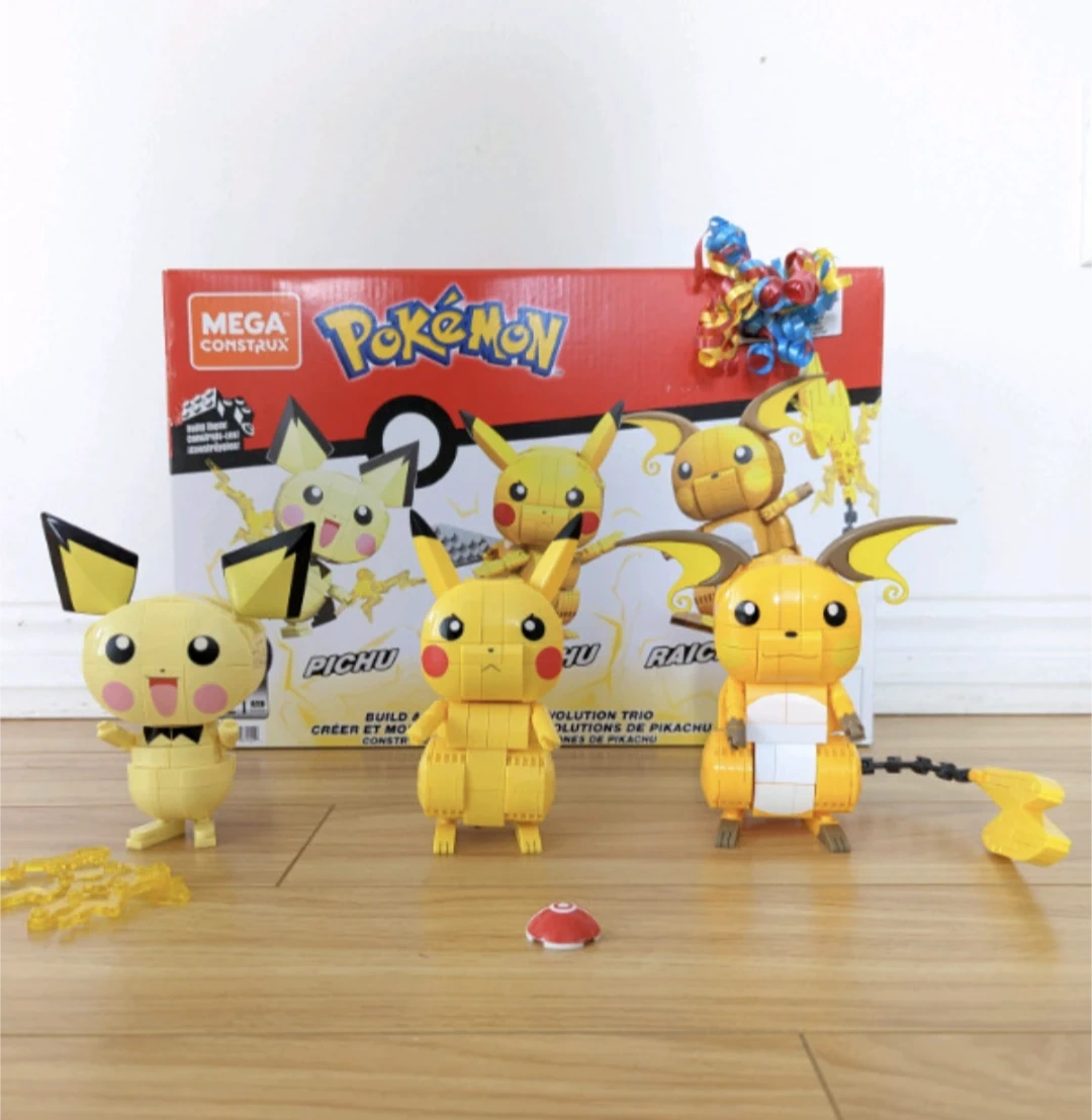 Like new with box Mega Construx Pokemon Pichu Pikachu Rachu TRIO Like new with box Mega Construx Pokemon Build & Show Pikachu Evolution Trio Construction Set, including Pichu, Pikachu, Raichu. Retail over $65. Pickup $40 cash final price. Everything in the very first picture is included, no missing pieces nor extra pieces. Pickup North York Centre.